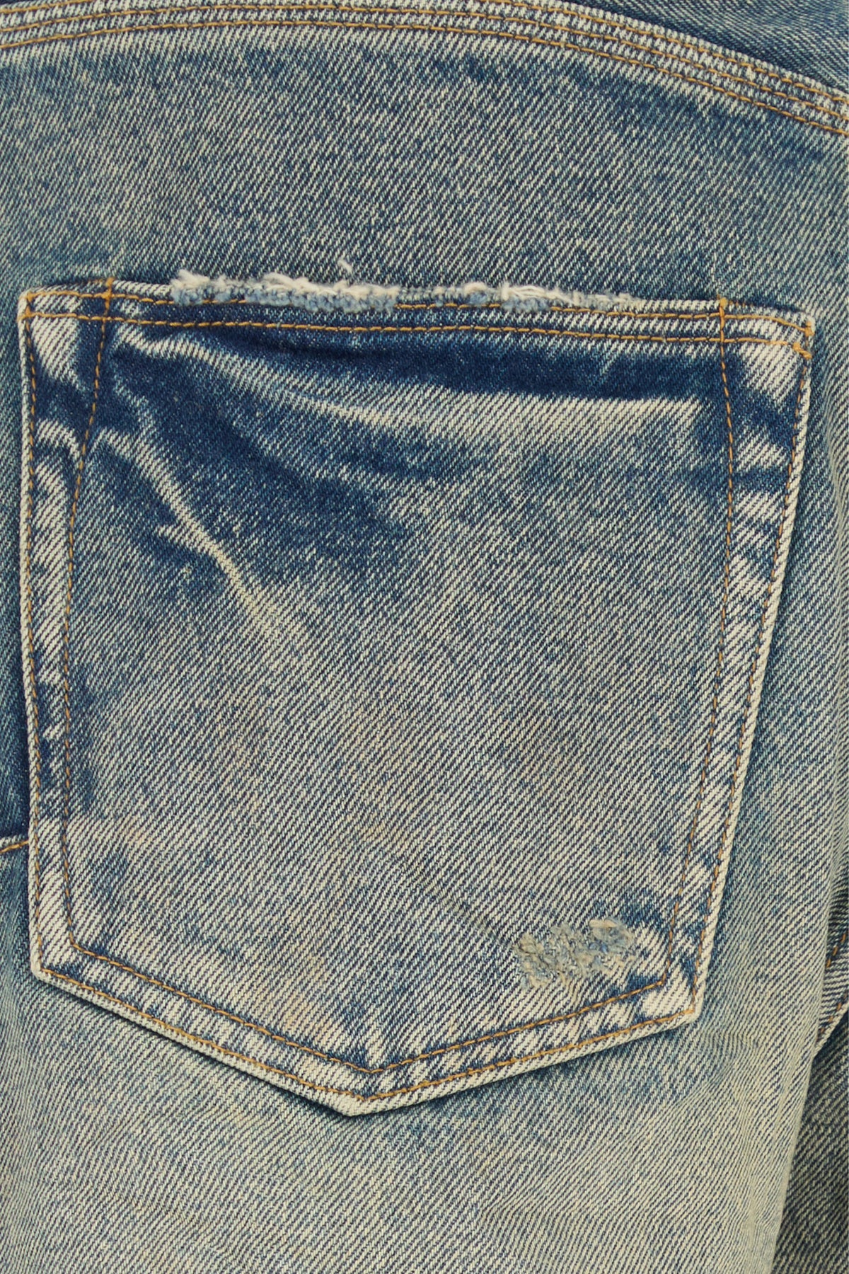 Jeans realized in distressed vintage-effect pure cotton denim with intentional rips enriched by logoed label at the back.