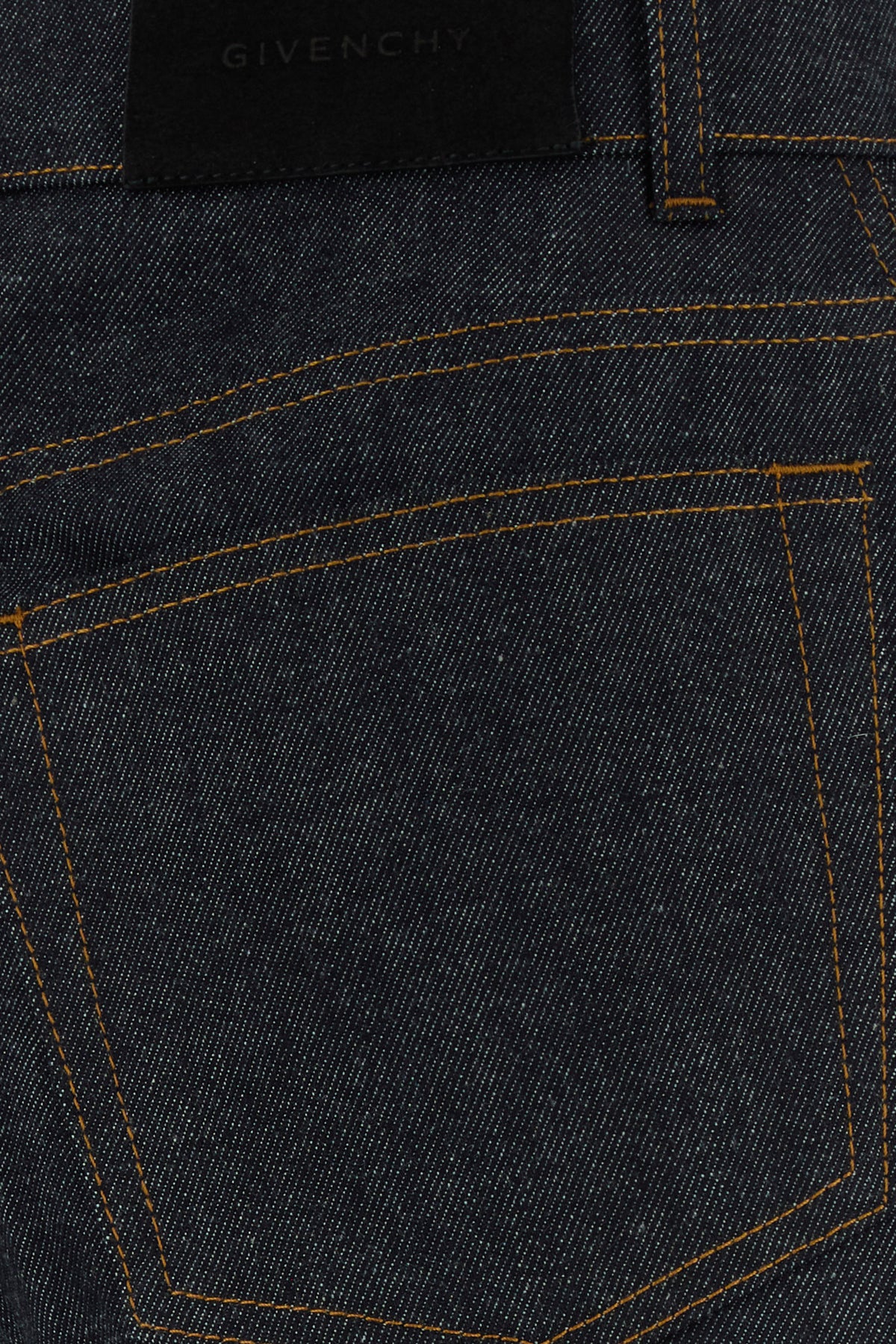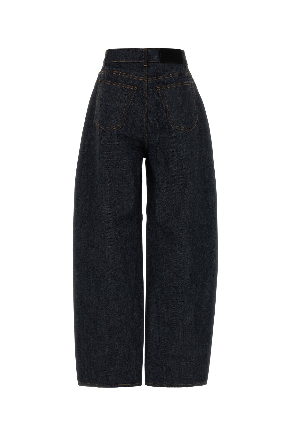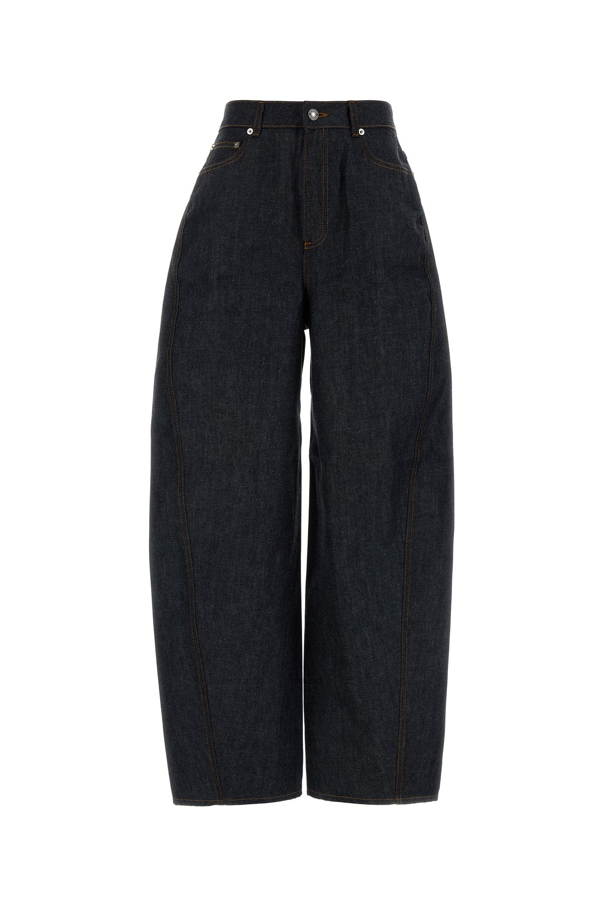 Wide-leg jeans realized in pure cotton denim enriched by logoed label at the back.