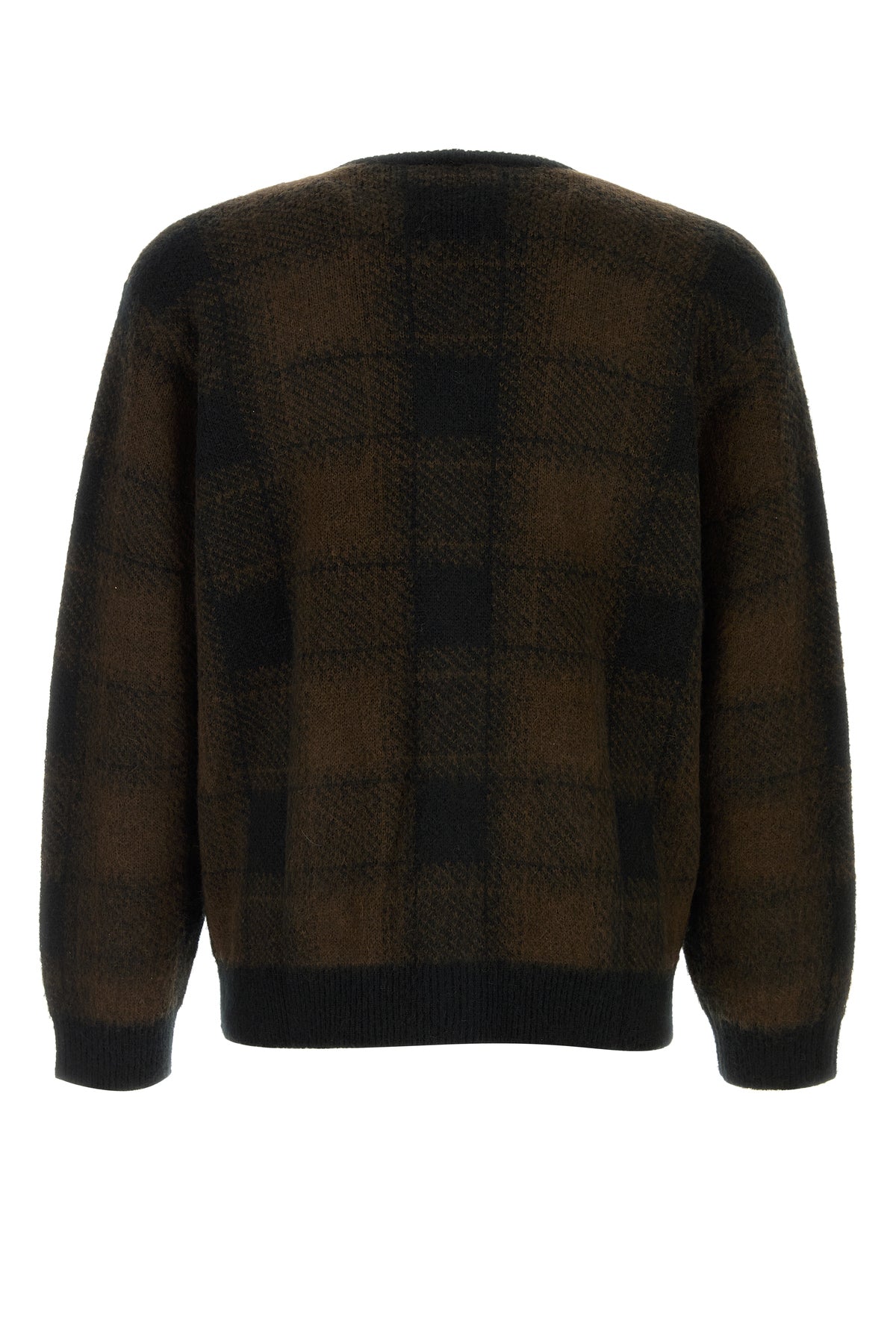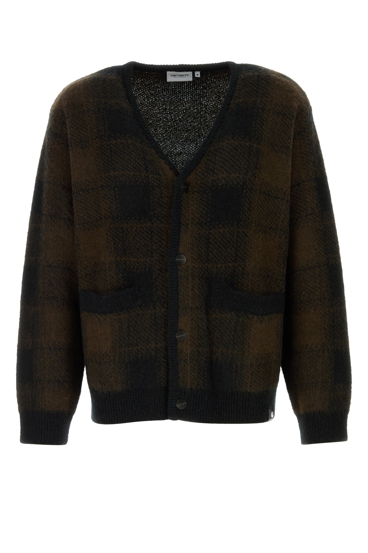 Cardigan realized in acrylic blend characterized by checked embroidery on the entire surface enriched by logoed label on the hemline.