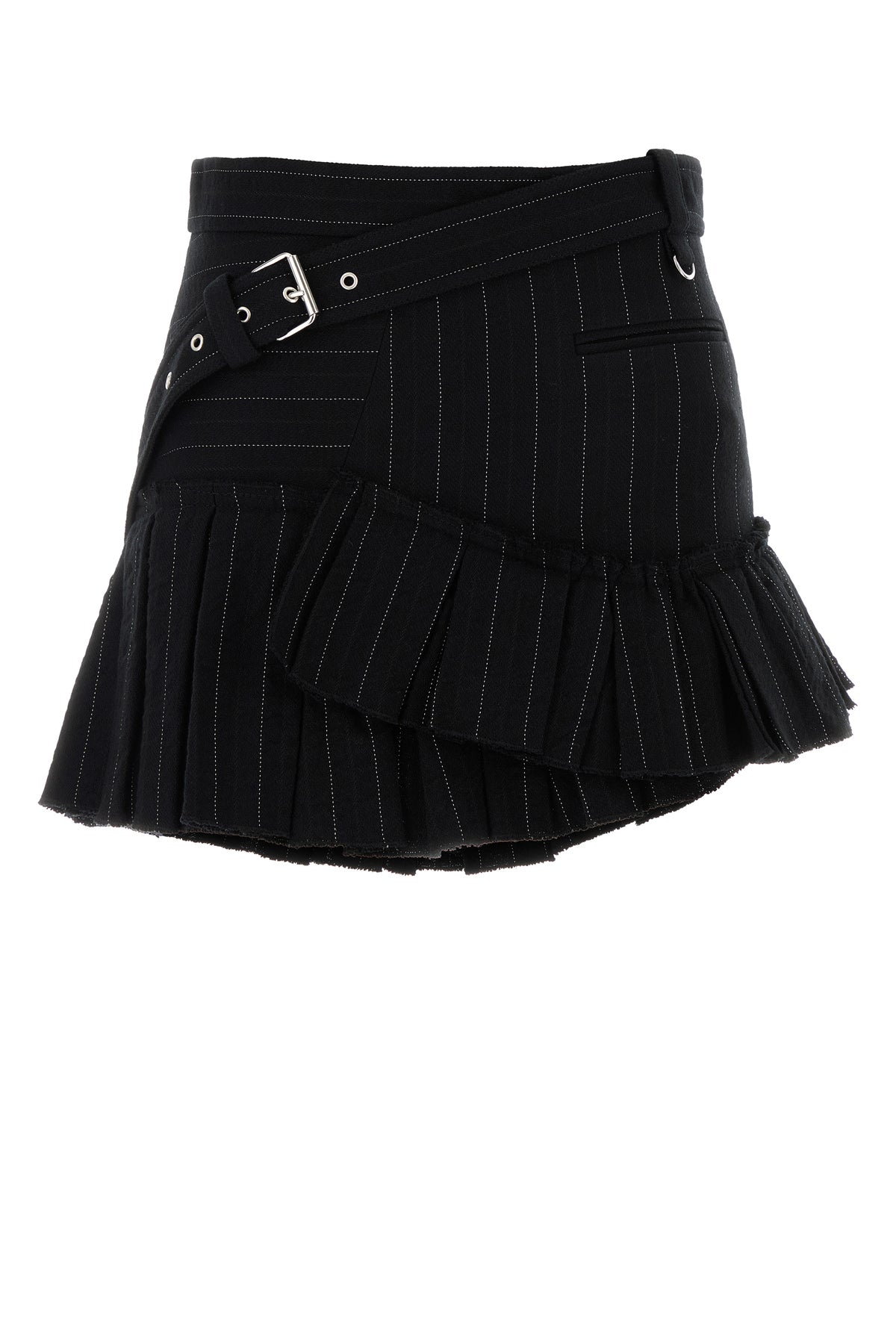 Mini skirt realized in cotton blend characterized by pinstriped motif embroidery on the entire surface.