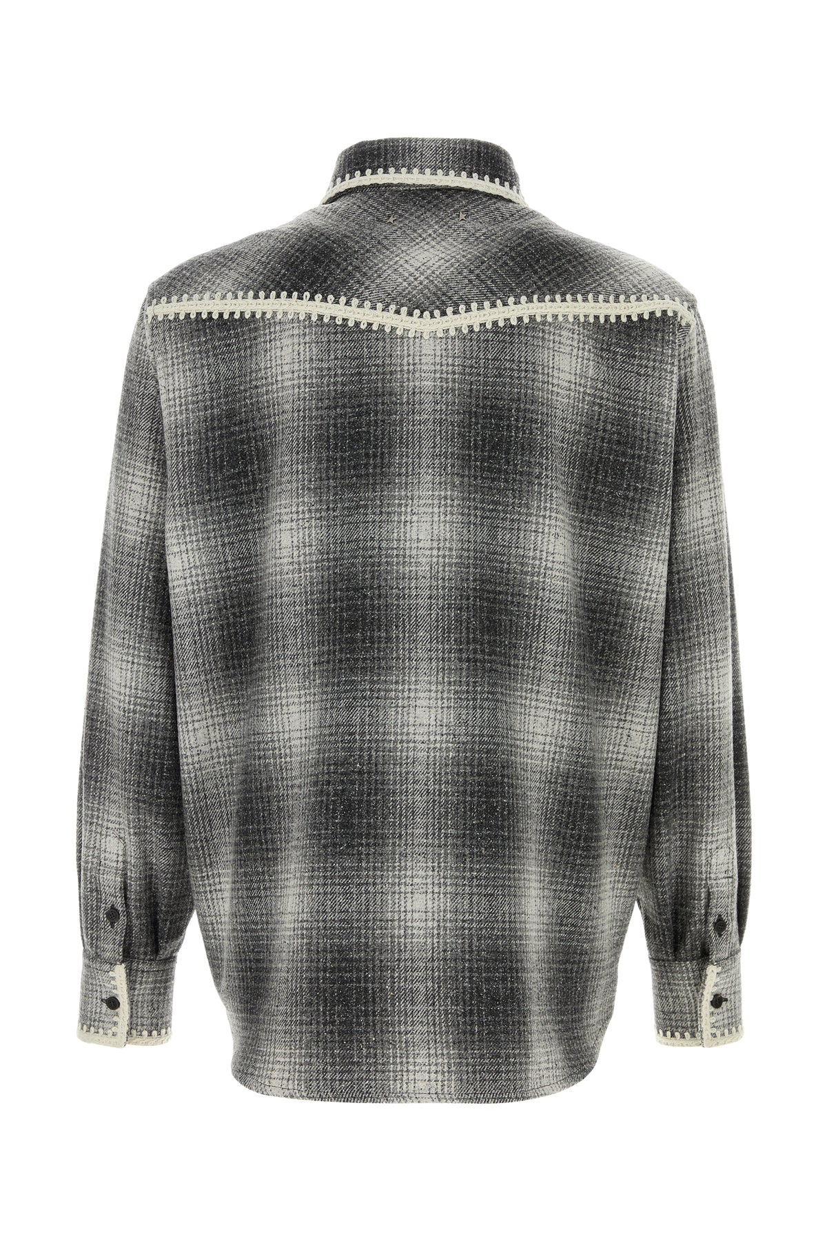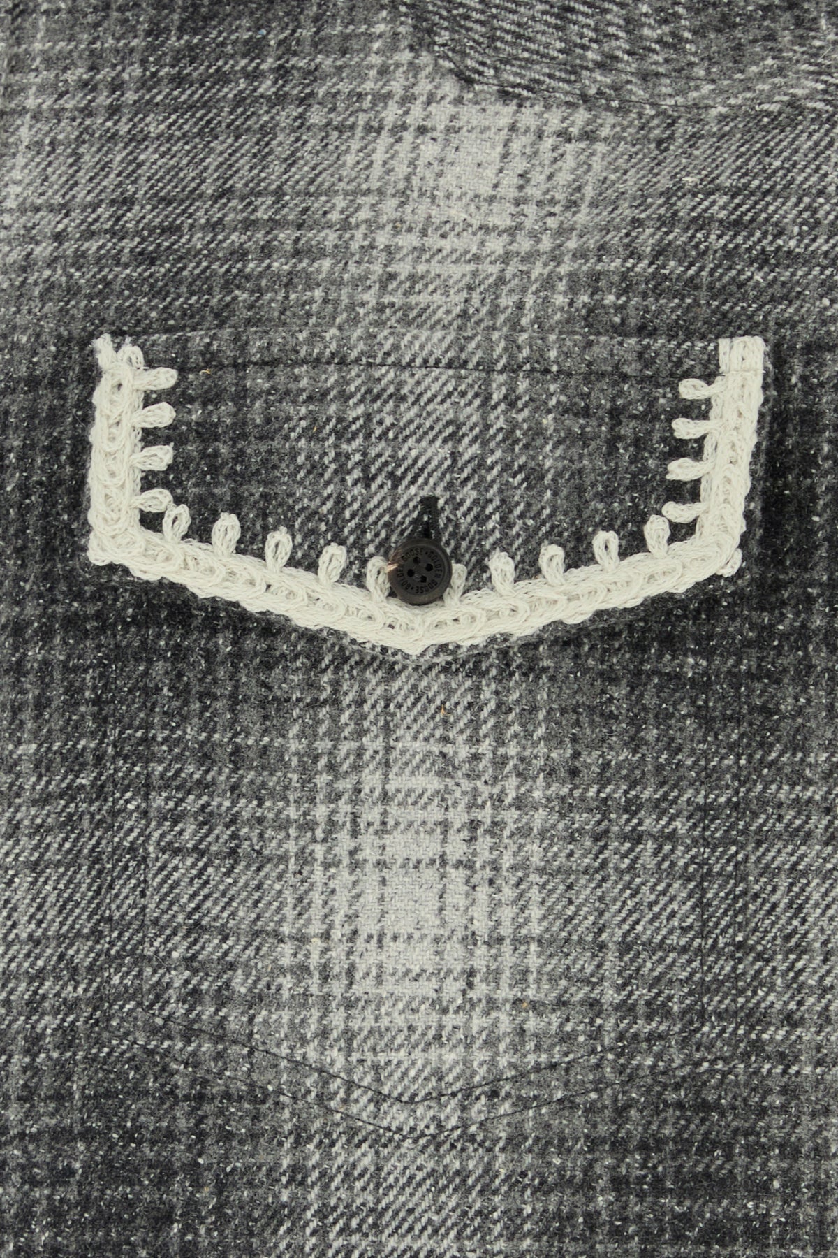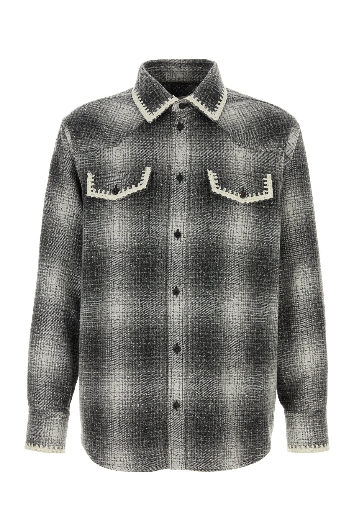 Shirt realized in flannel characterized by checked embroidery on the entire surface.