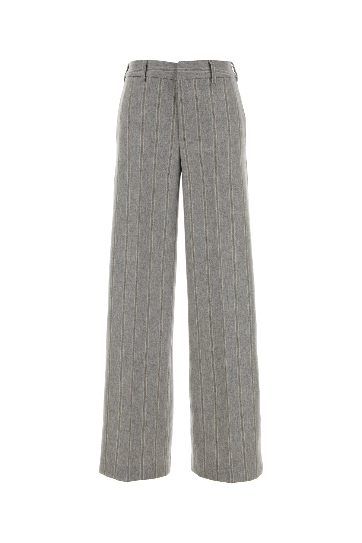 Palazzo pant realized in stretch virgin wool blend characterized by striped embroidery on the entire surface.
