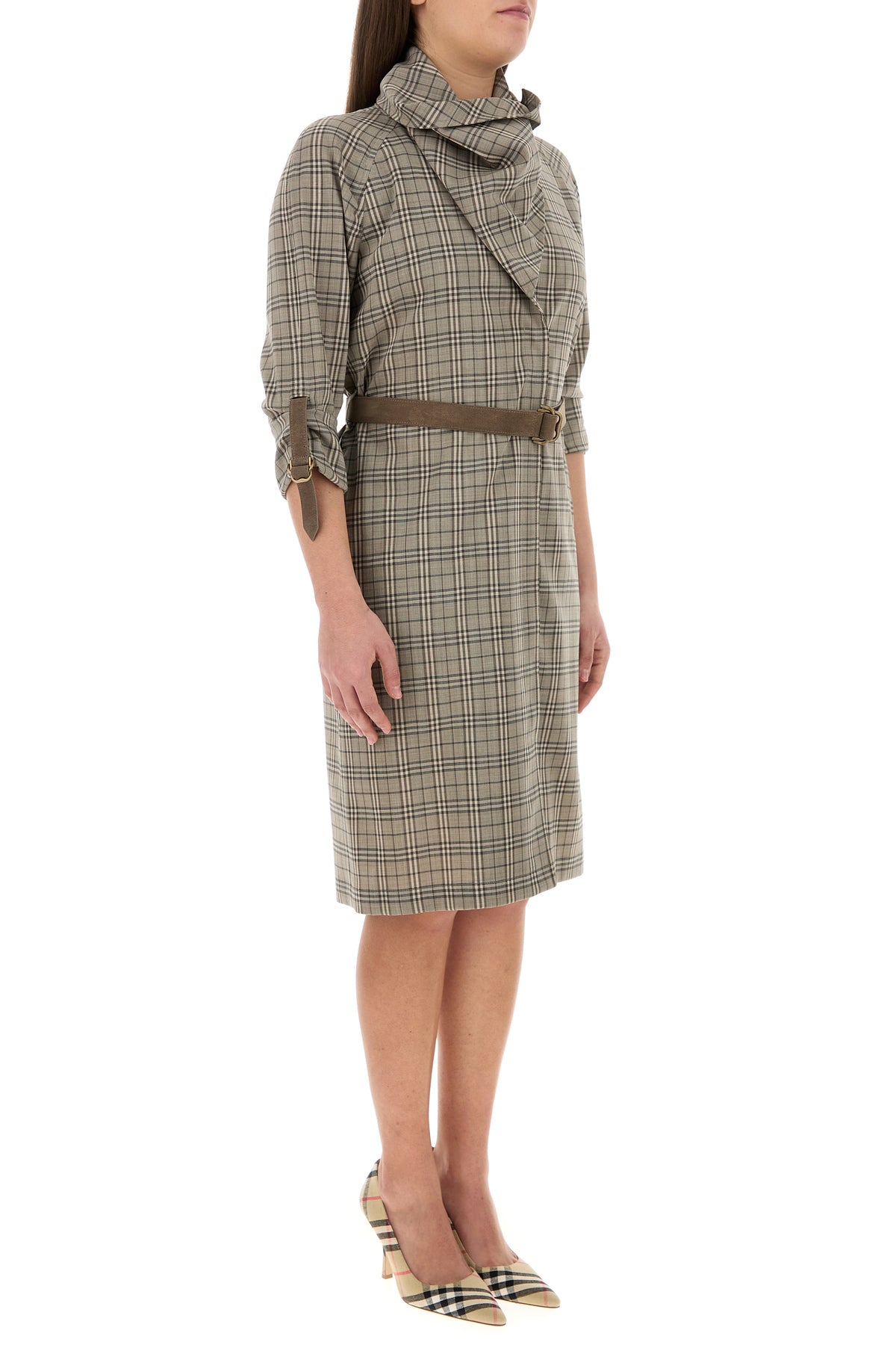 Midi-length dress realized in stretch wool characterized by Burberry Check motif embroidery on the entire surface enriched by detachable suede belt with metal B buckle.