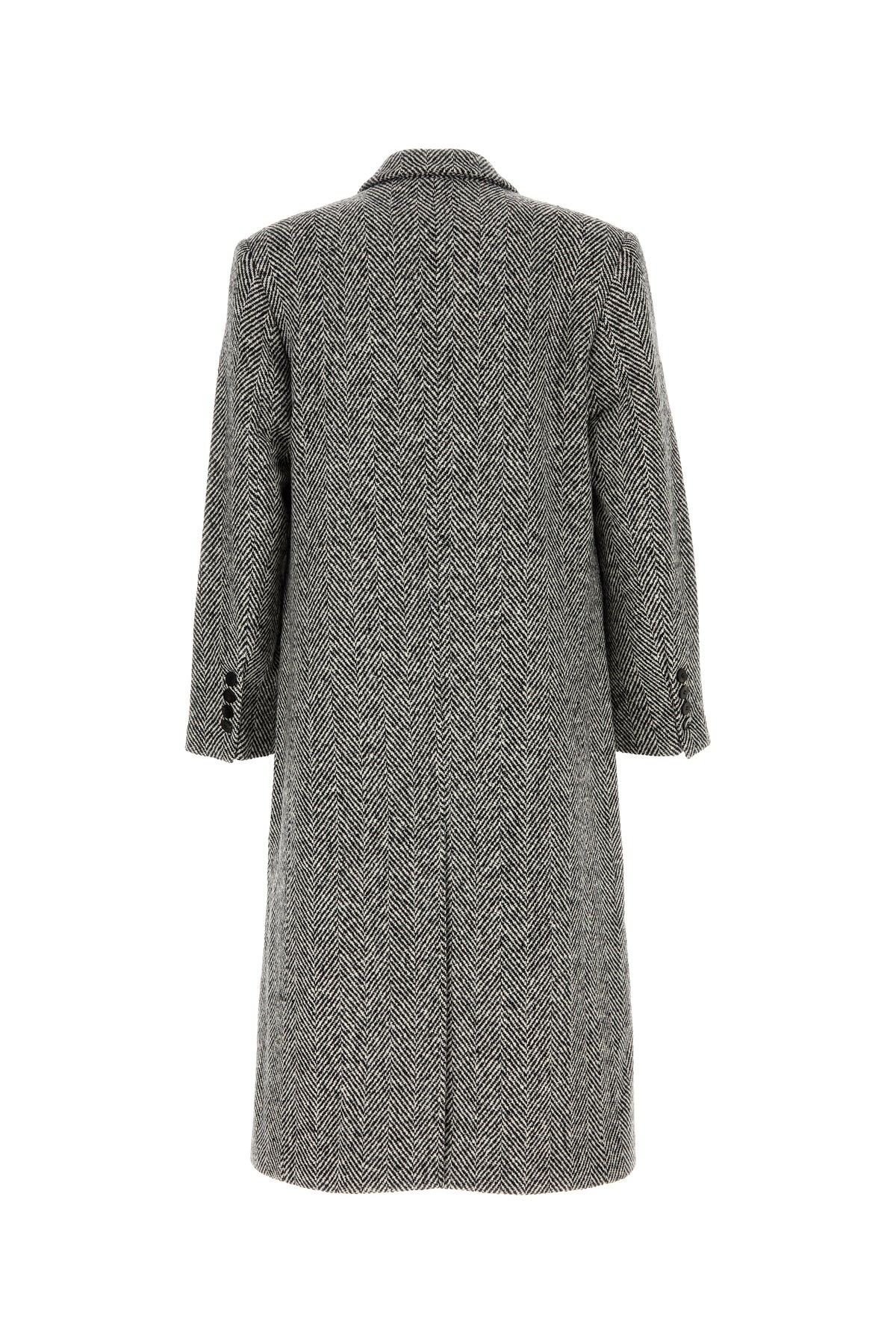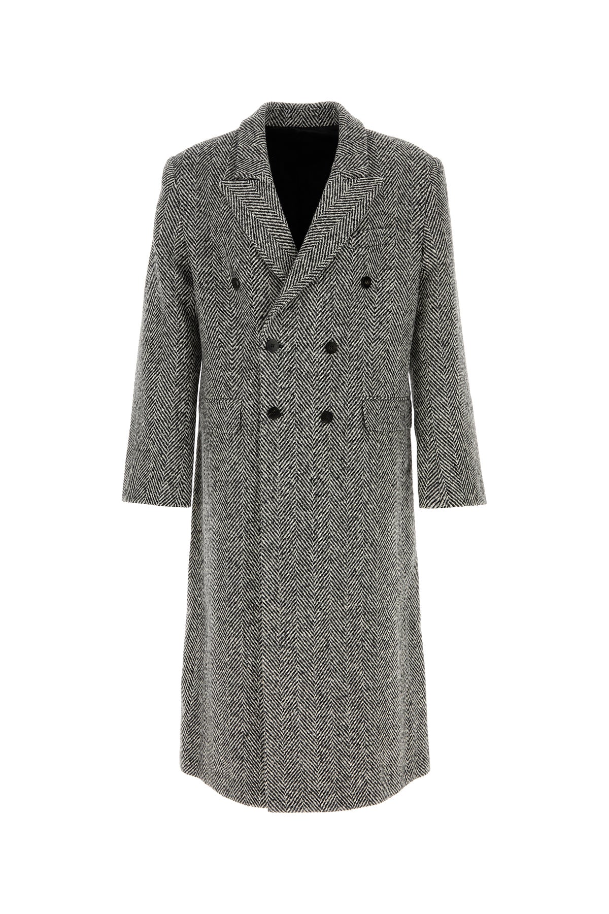 Coat realized in pure virgin wool characterized by herringbone embroidery on the entire surface.
