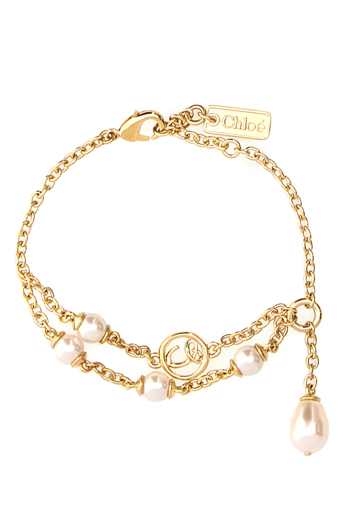 Bracelet realized in gold-tone plated metal enriched by C details and pearls.
