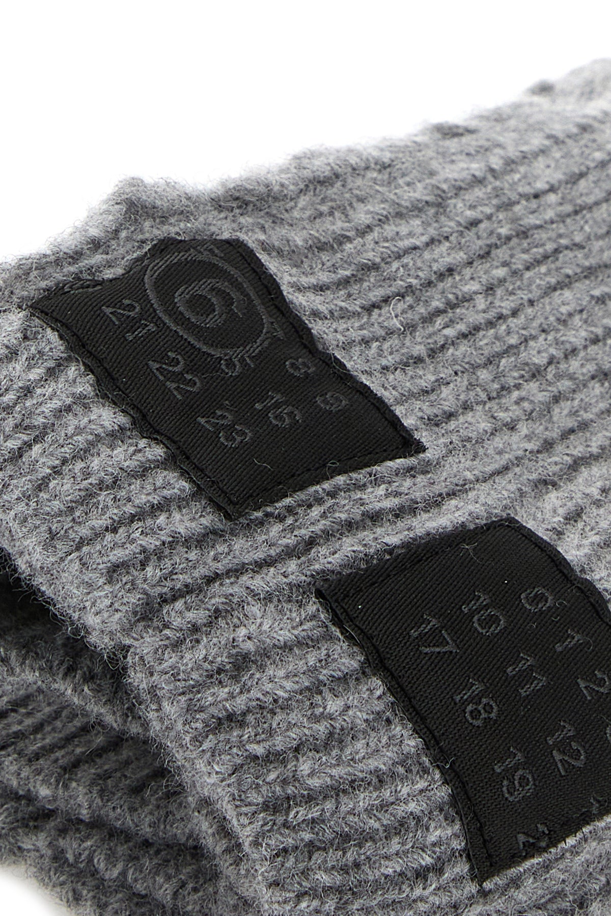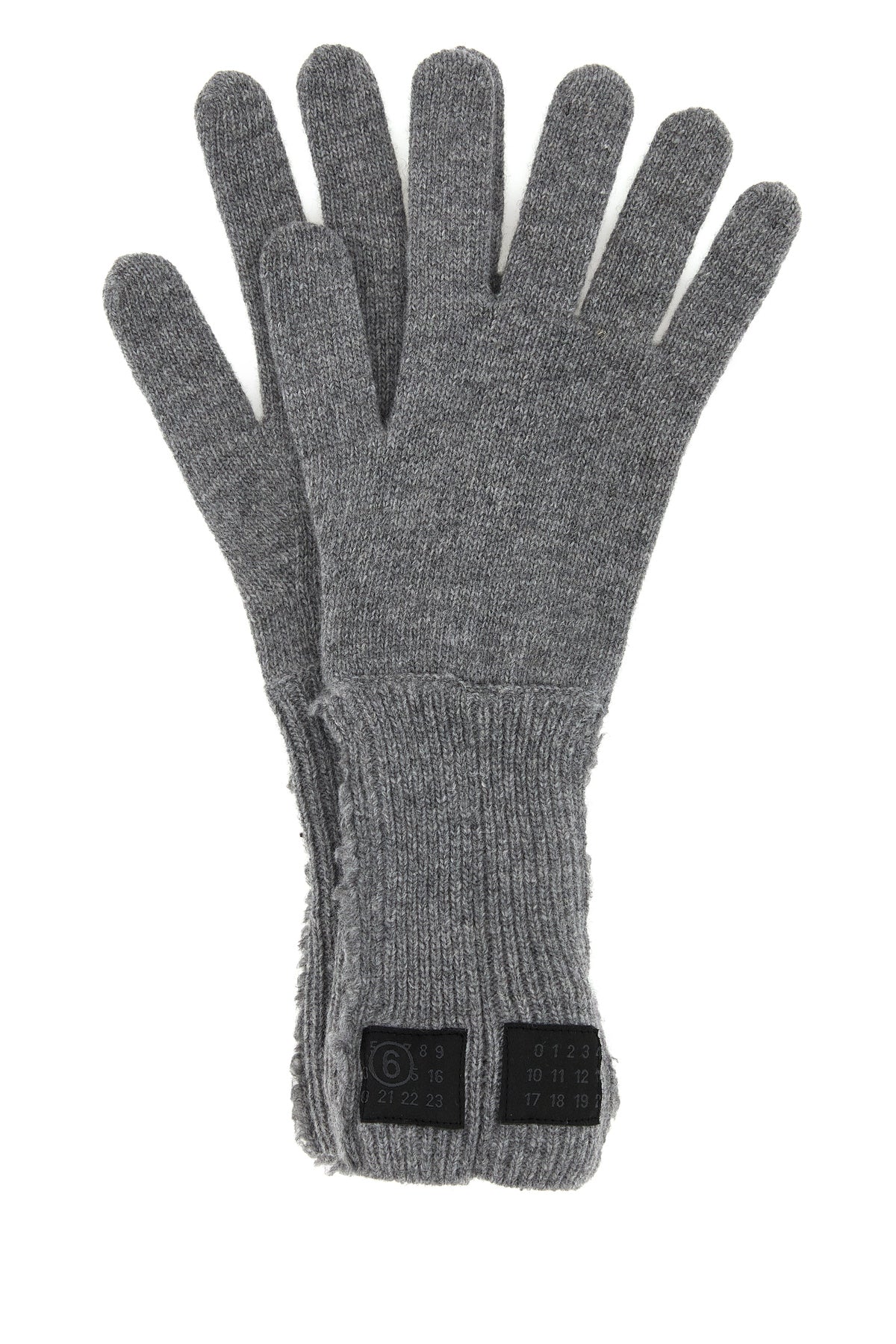Gloves realized in wool blend enriched by logoed label on the hemline