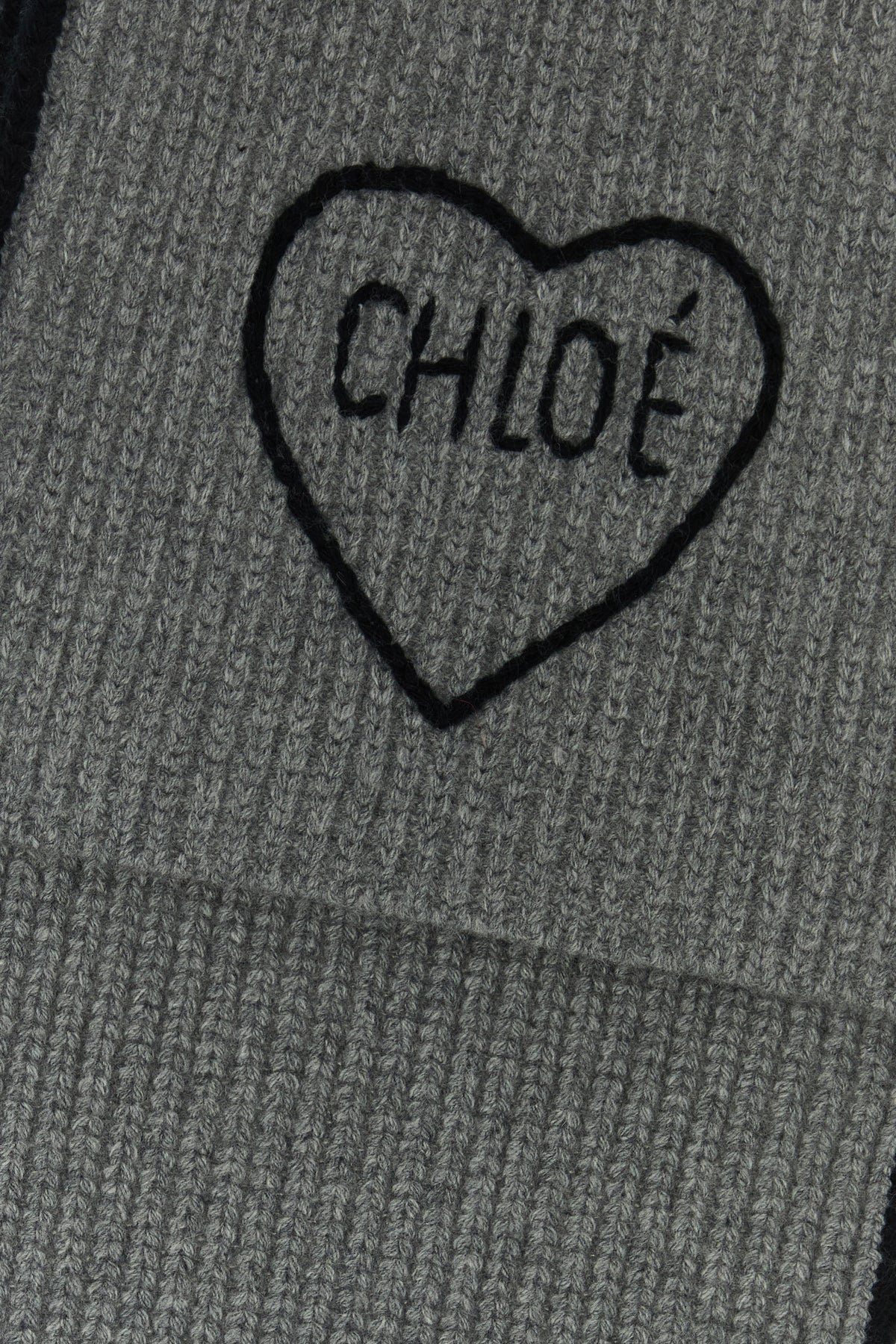 Scarf realized in wool and cashmere characterized by embroidered logo on the hemline.