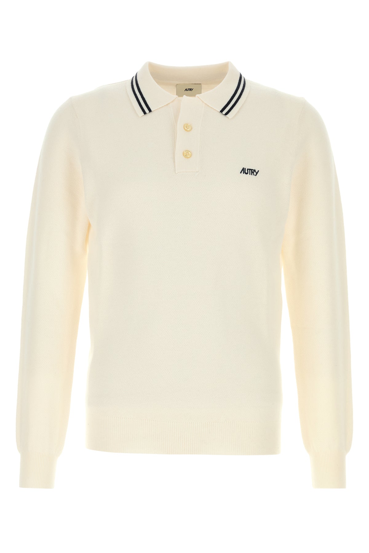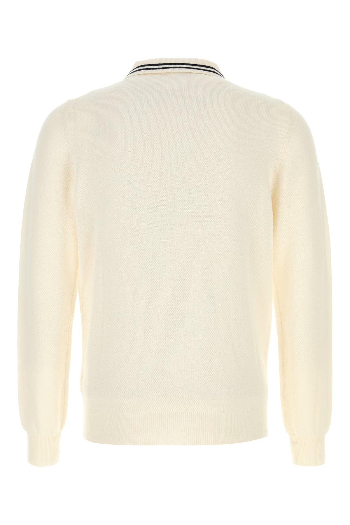 Polo shirt realized in merino wool and organic cotton knit characterized by contrasting embroidered logo on the chest.