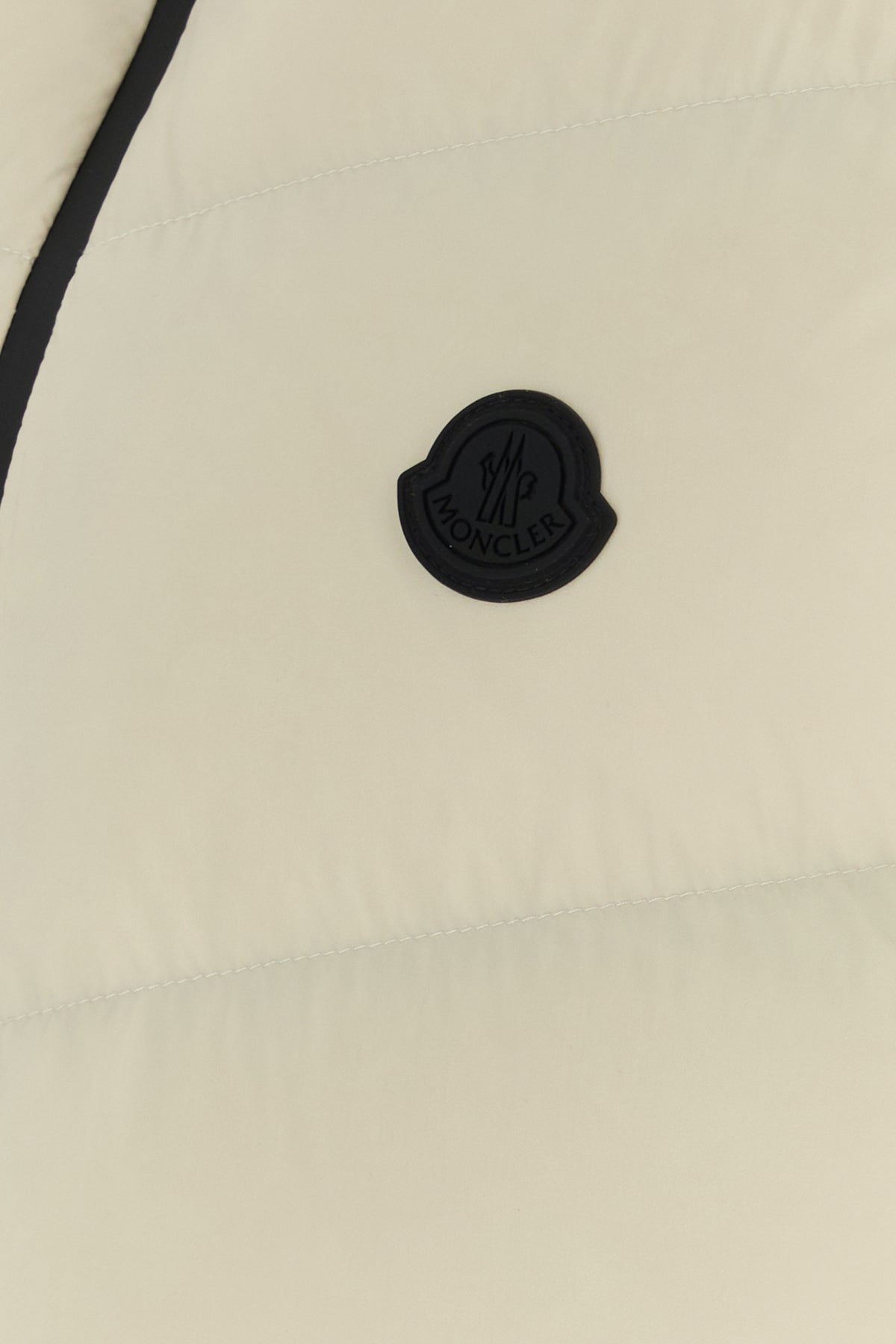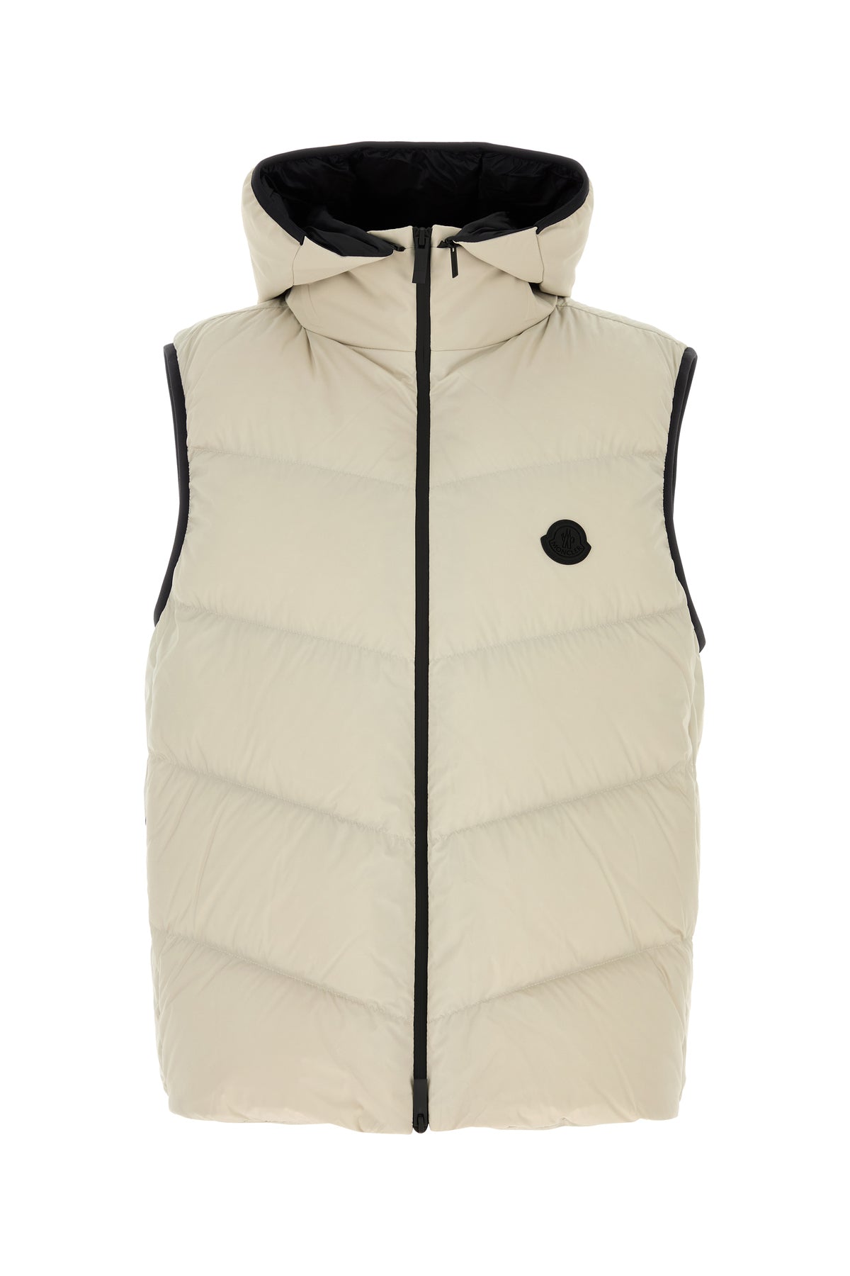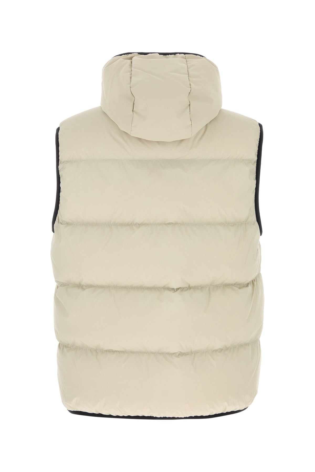 Sleeveless down jacket realized in quilted nylon enriched by rubberized logoed patch on the chest.