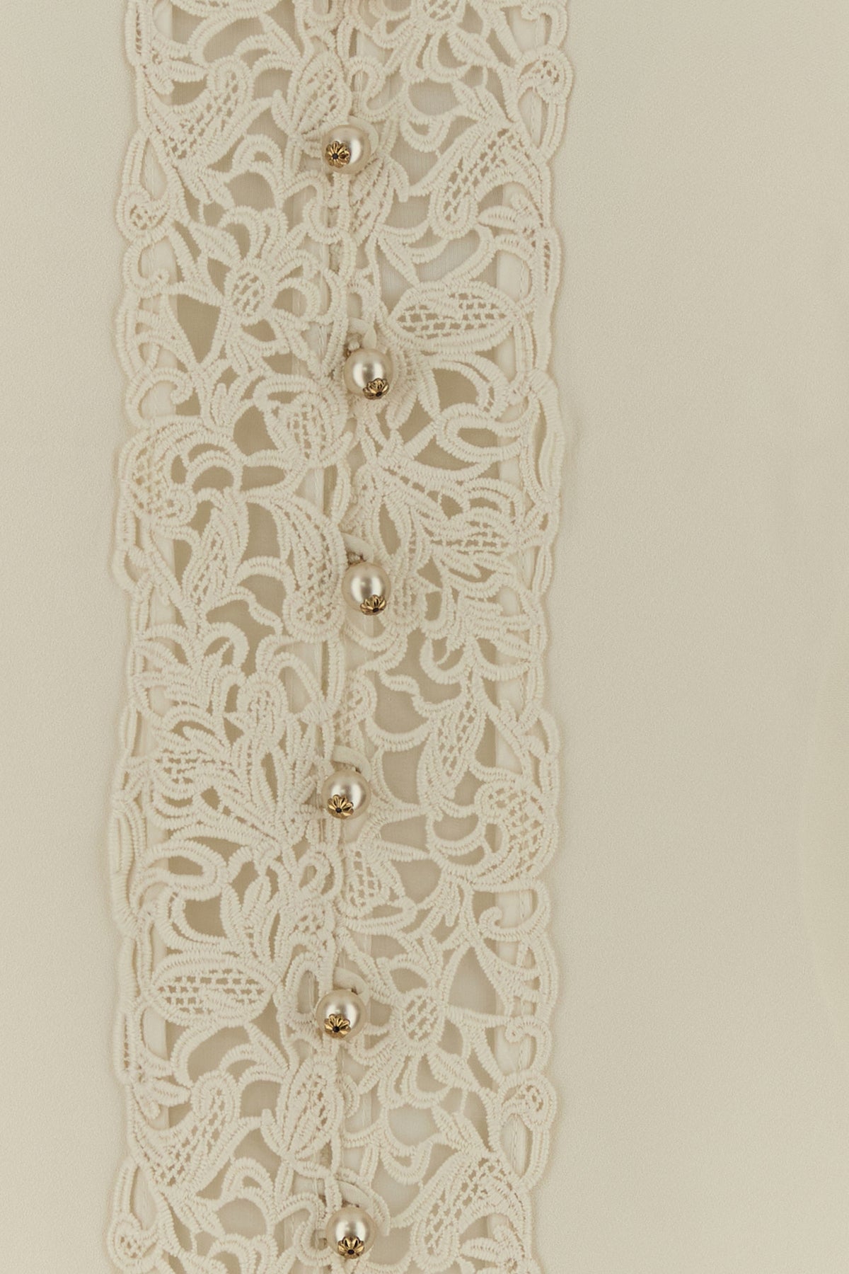 Shirt realized in viscose with lace insert on the collar, on the cuffs and at the front.