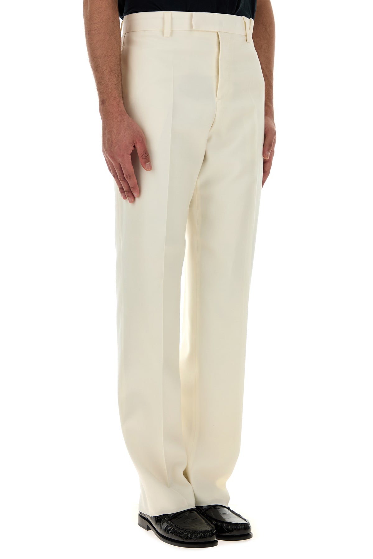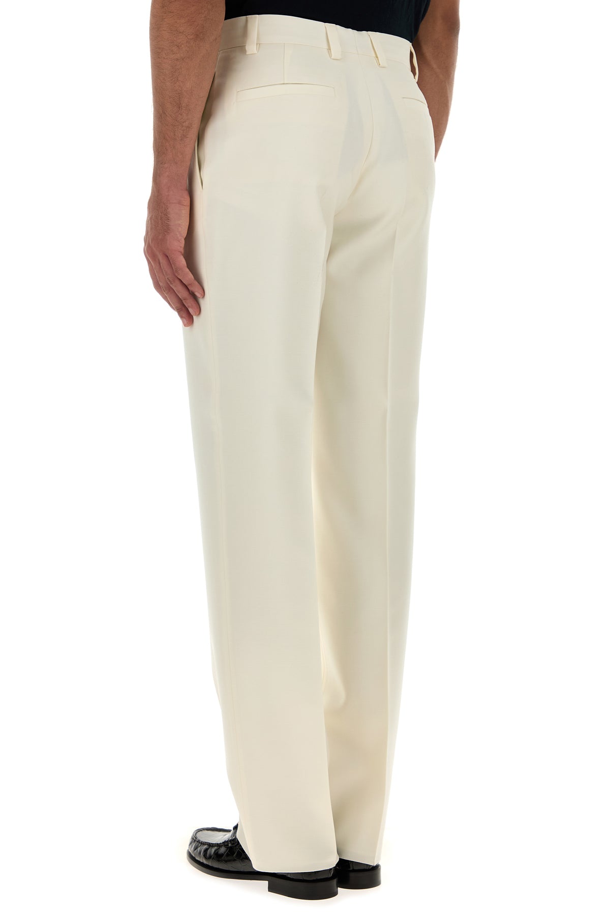 Pant realized in wool blend enriched by tonal Versace label at the back.