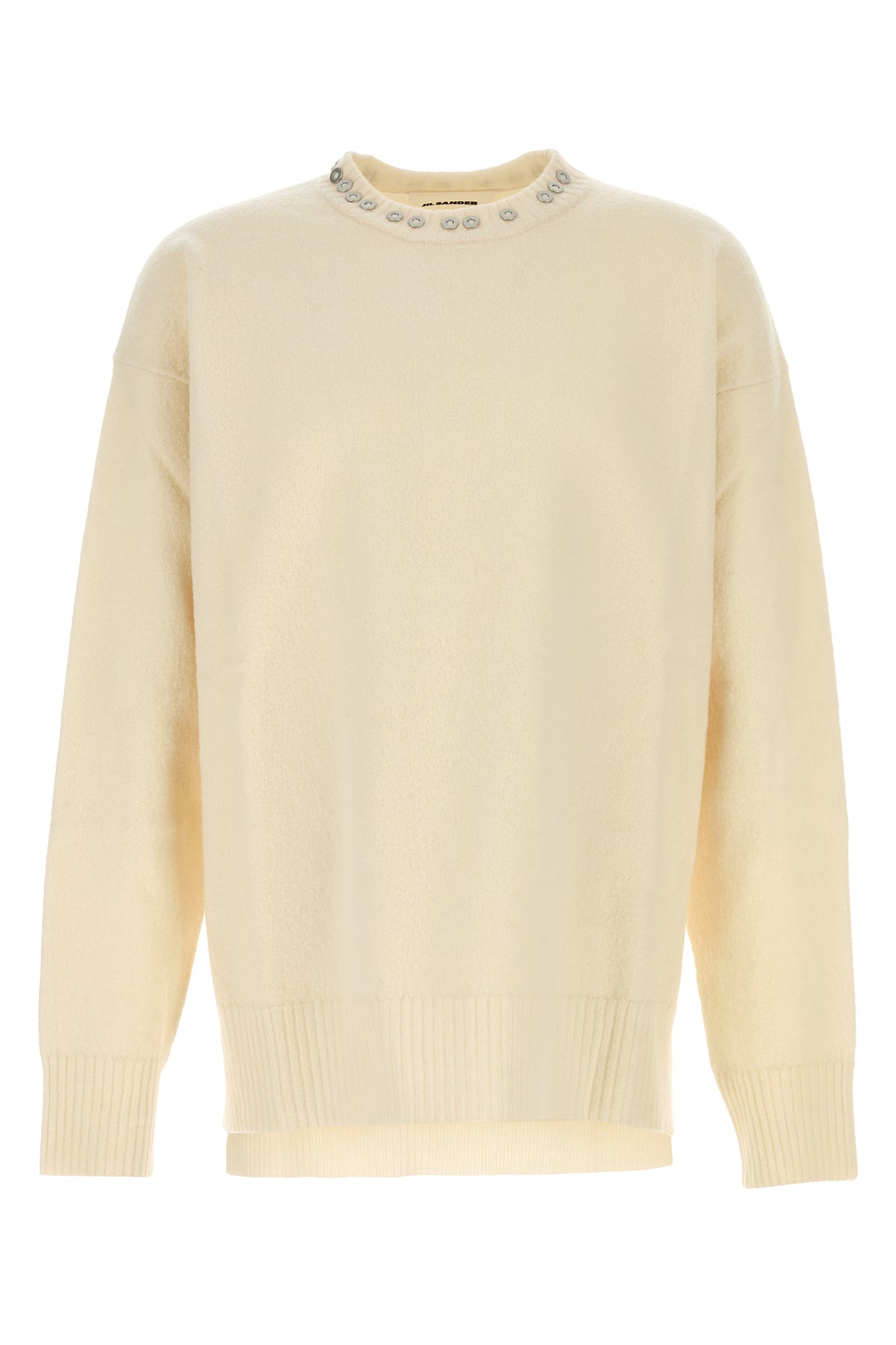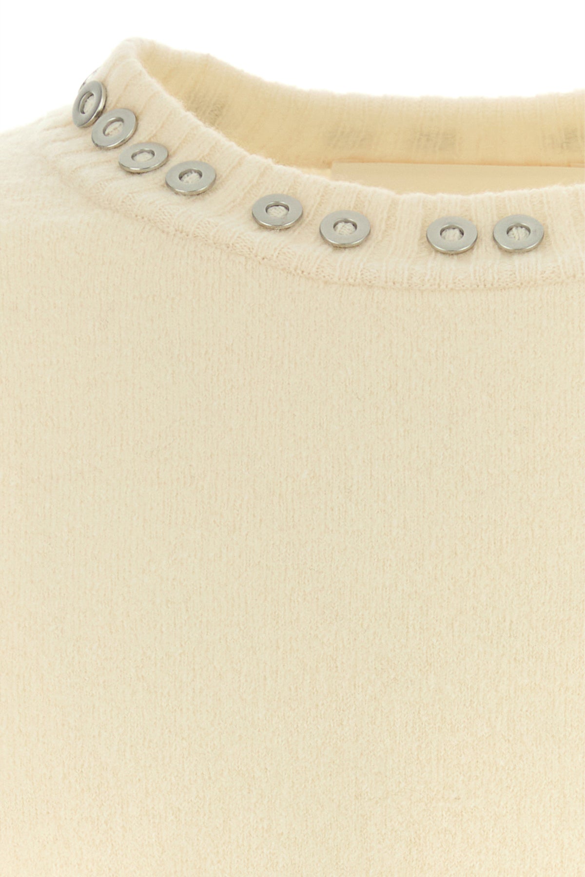 Sweater realized in pure virgin wool enriched by metal studs on the ribbed crew-neck.