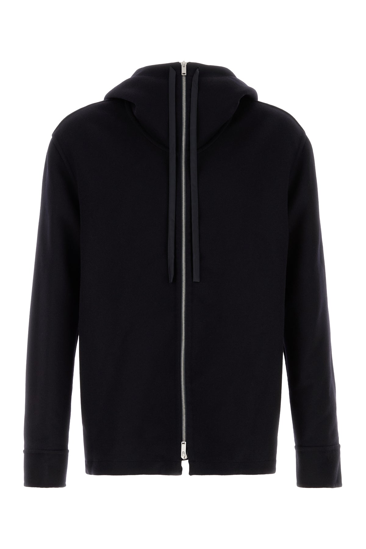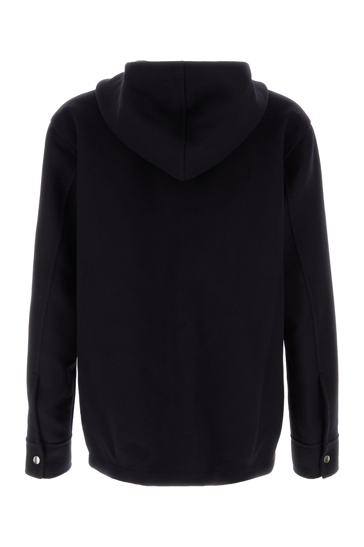 Cardigan realized in pure cashmere characterized by drawstring hood.
