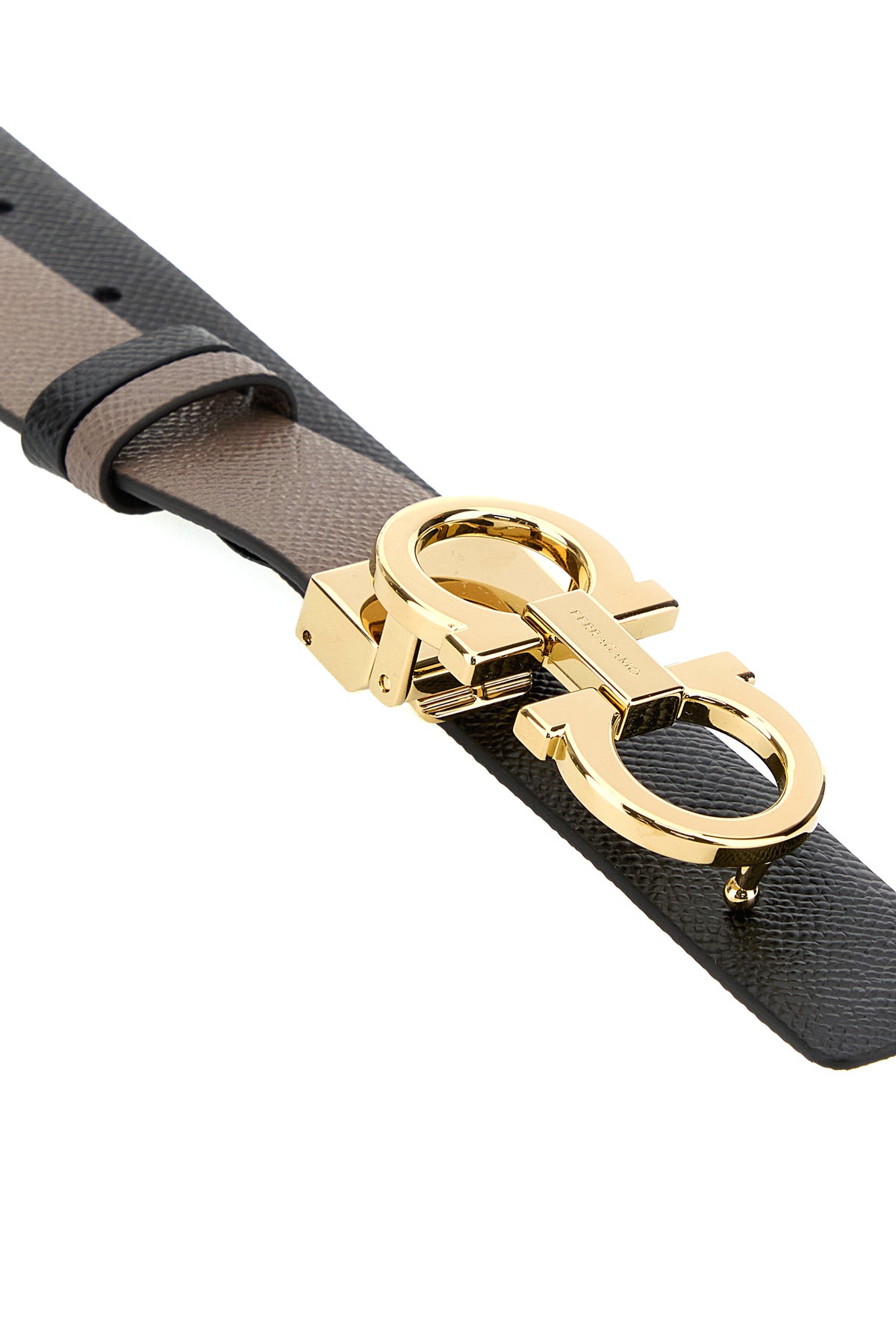 Reversible belt realized in grained calf leather characterized by Gancini buckle.