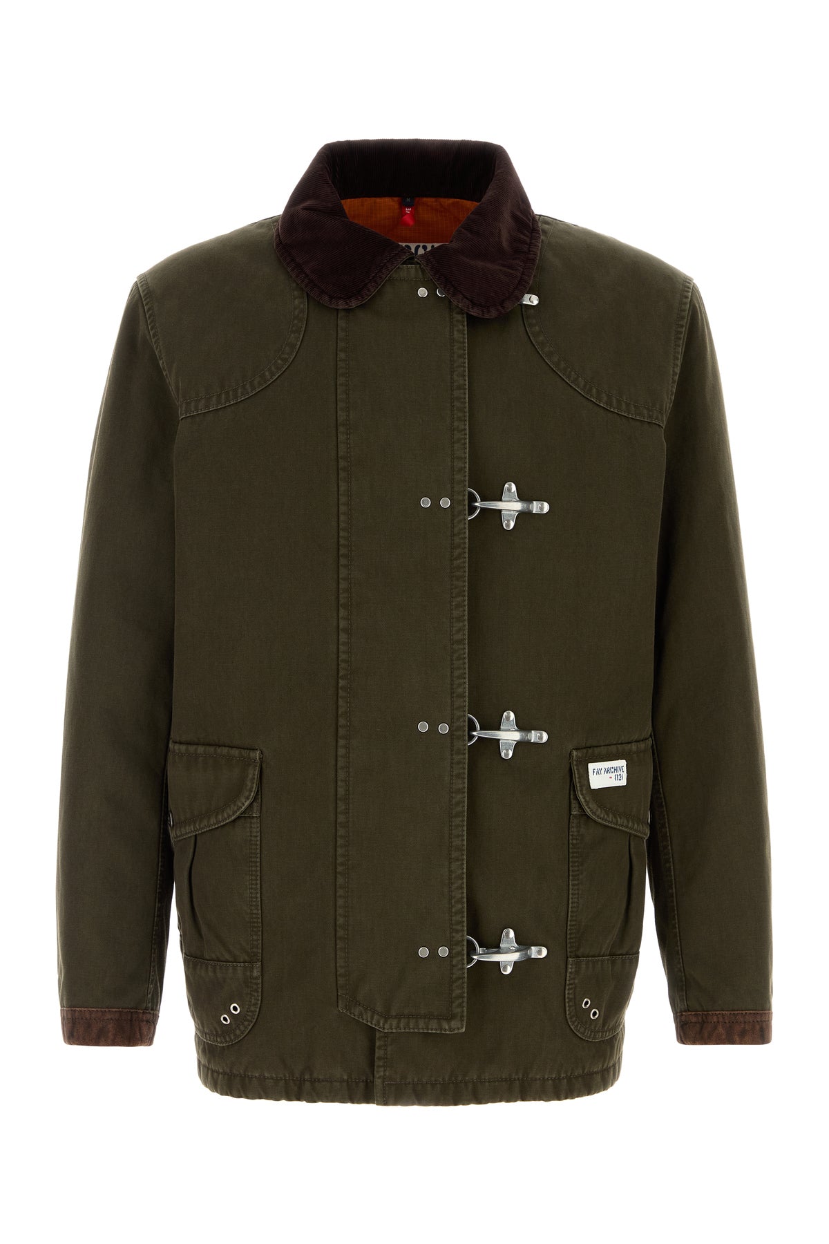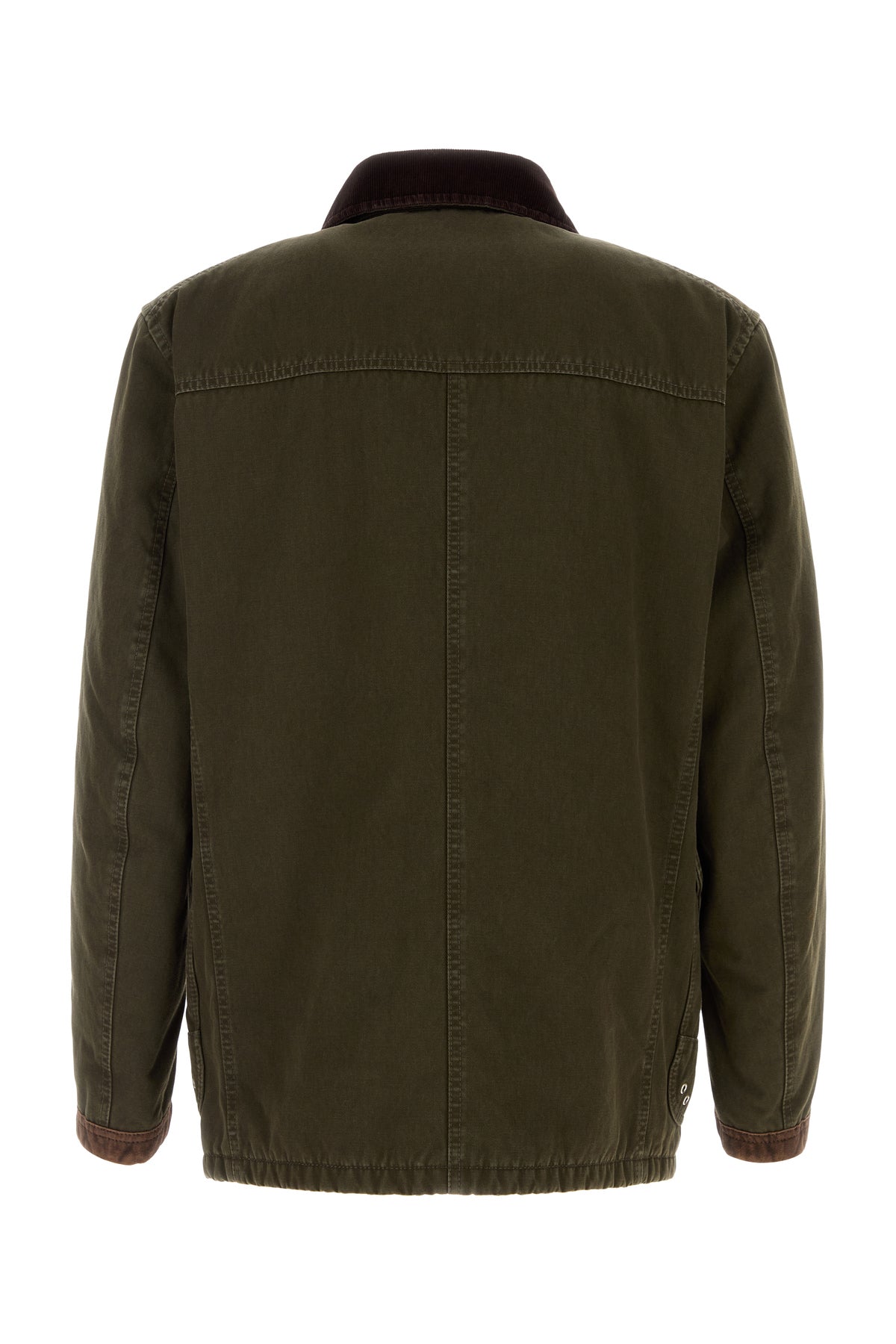 Jacket realized in pure cotton canvas enriched by contrasting logoed label at the front.