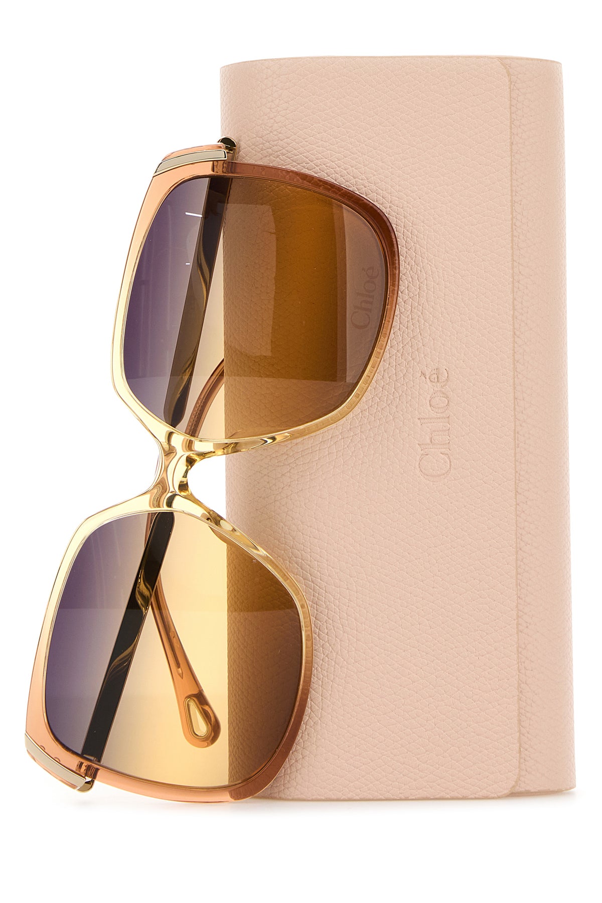 Sunglasses realized in acetate and metal characterized by animal print at the front and embossed logo on the arms.