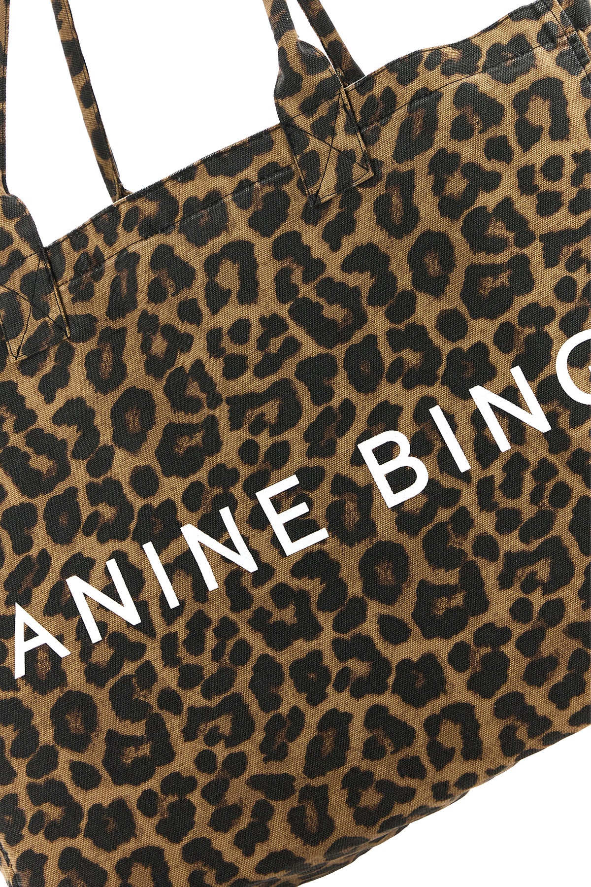 Shopping bag realized in pure cotton canvas characterized by animal print on the entire surface and printed logo at the front.