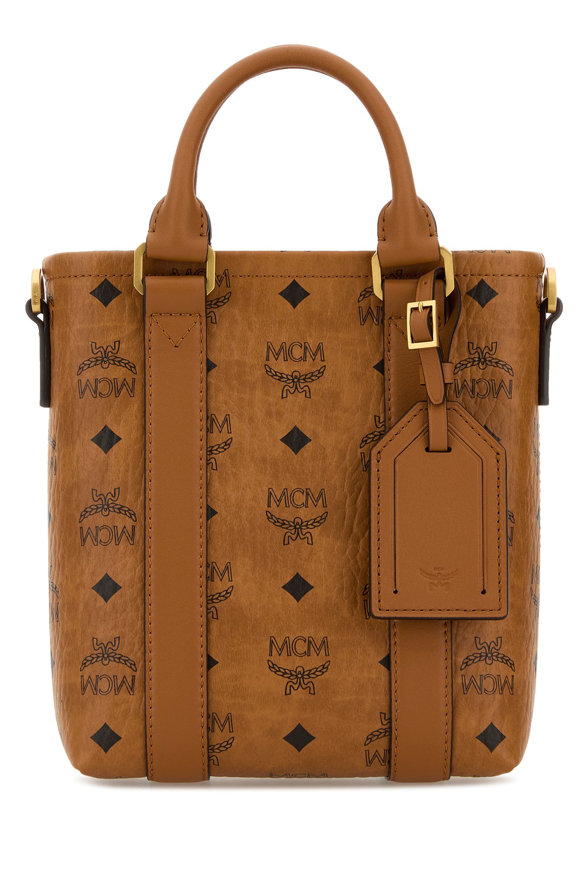 Bucket bag realized in coated canvas with leather inserts characterized by Visetos print on the entire surface.