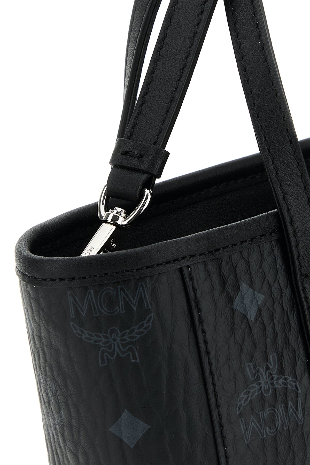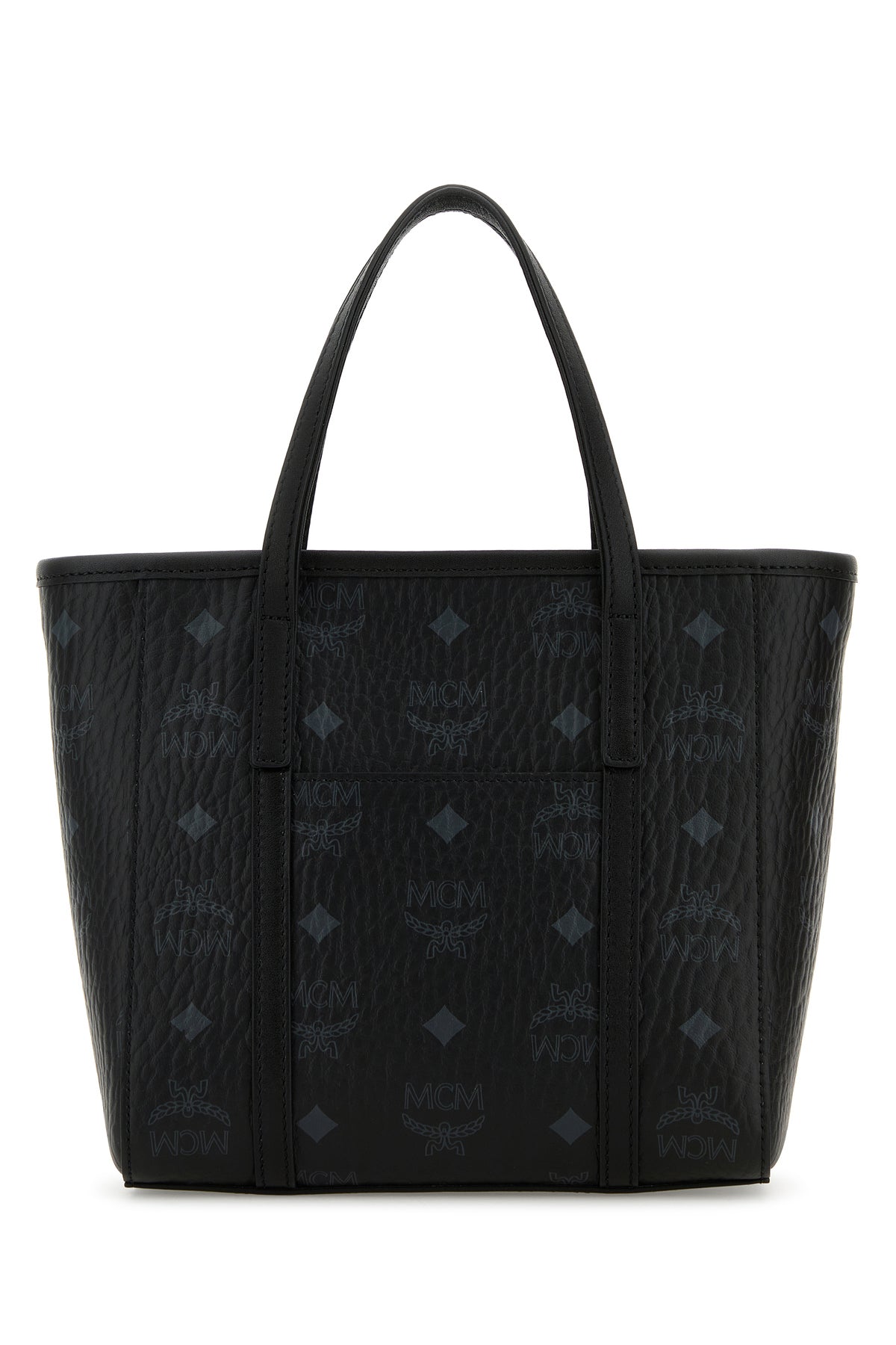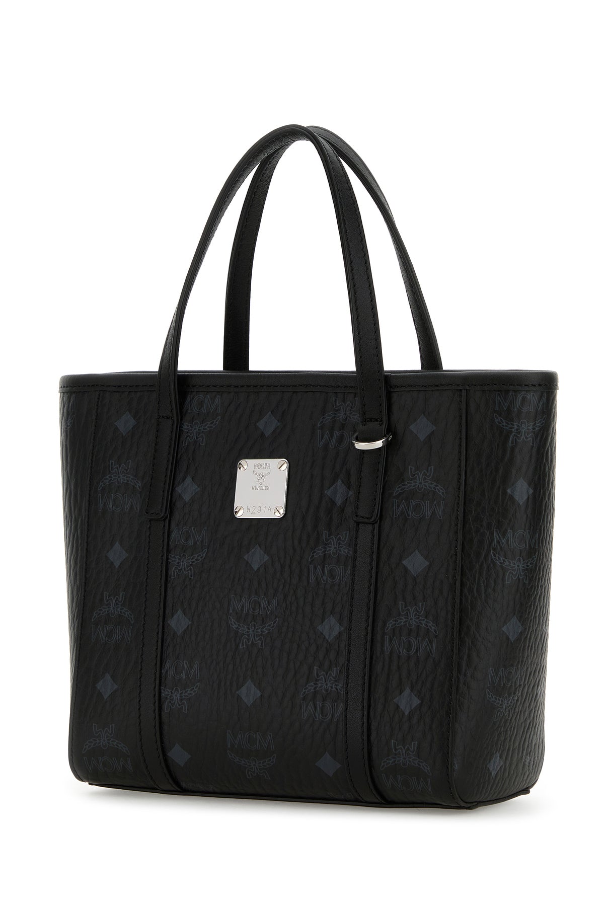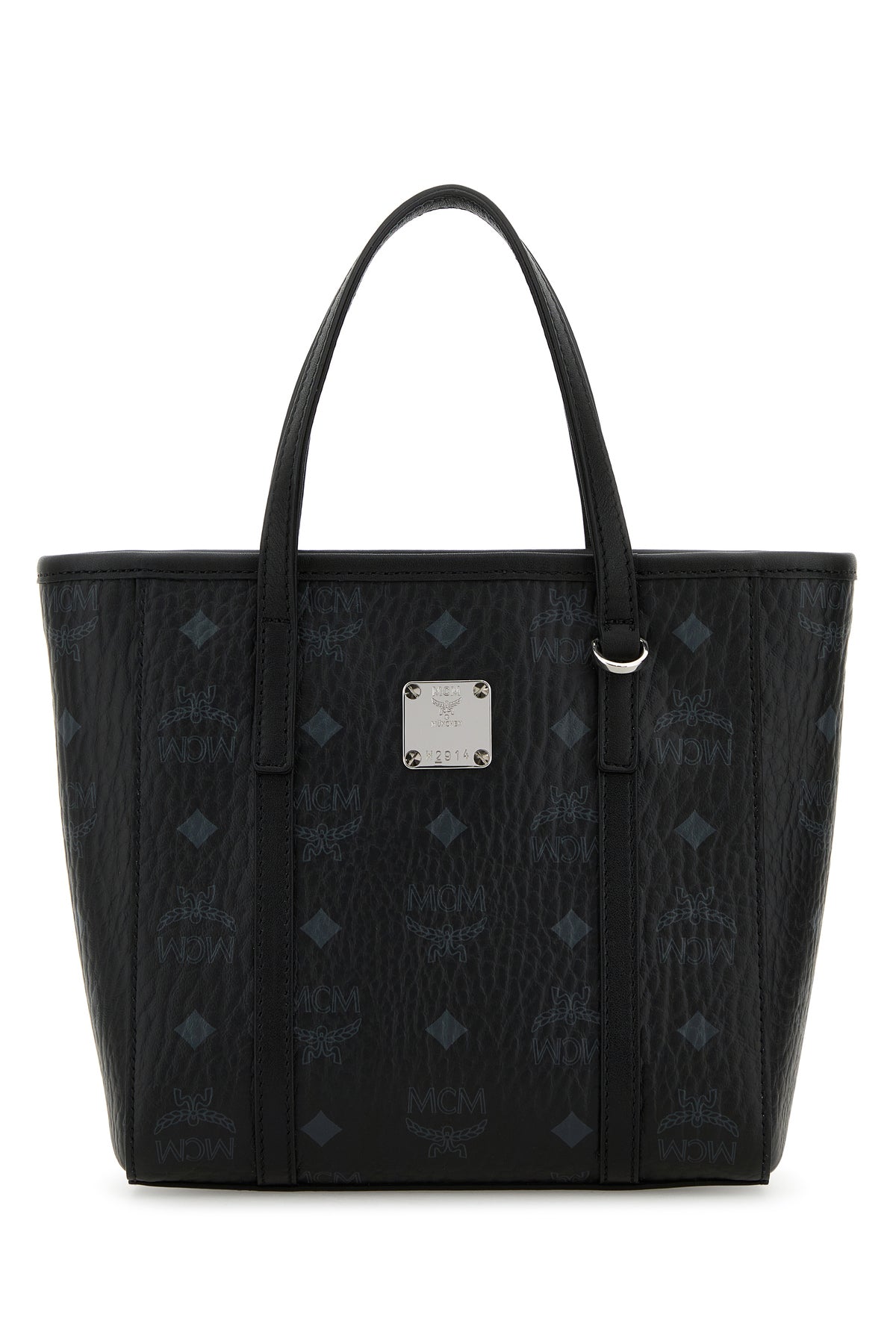 Handbag realized in coated canvas with smooth leather inserts characterized by Visetos print on the entire surface enriched by metal logoed plate at the front.