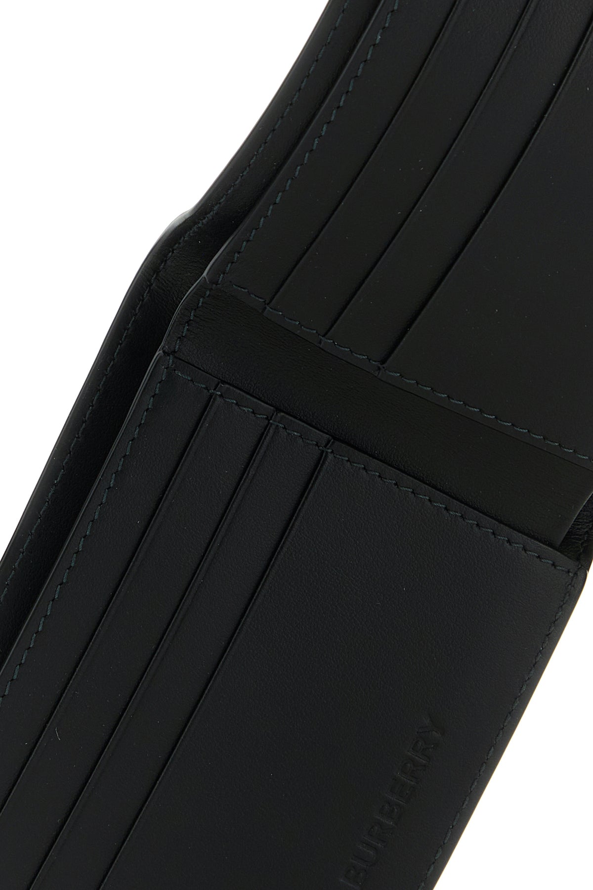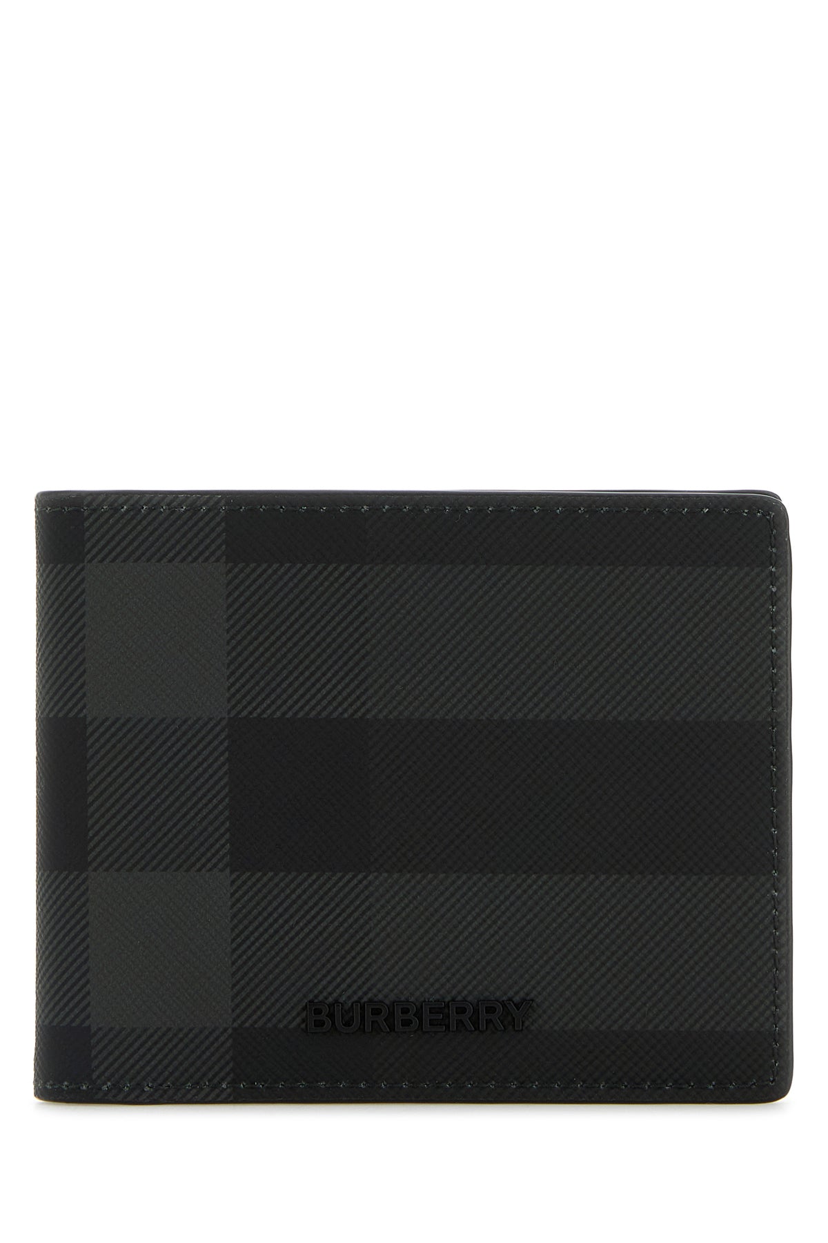 Wallet realized in coated caverns characterized by Burberry Check print on the entree surface enriched by metal lettering logo at the front.