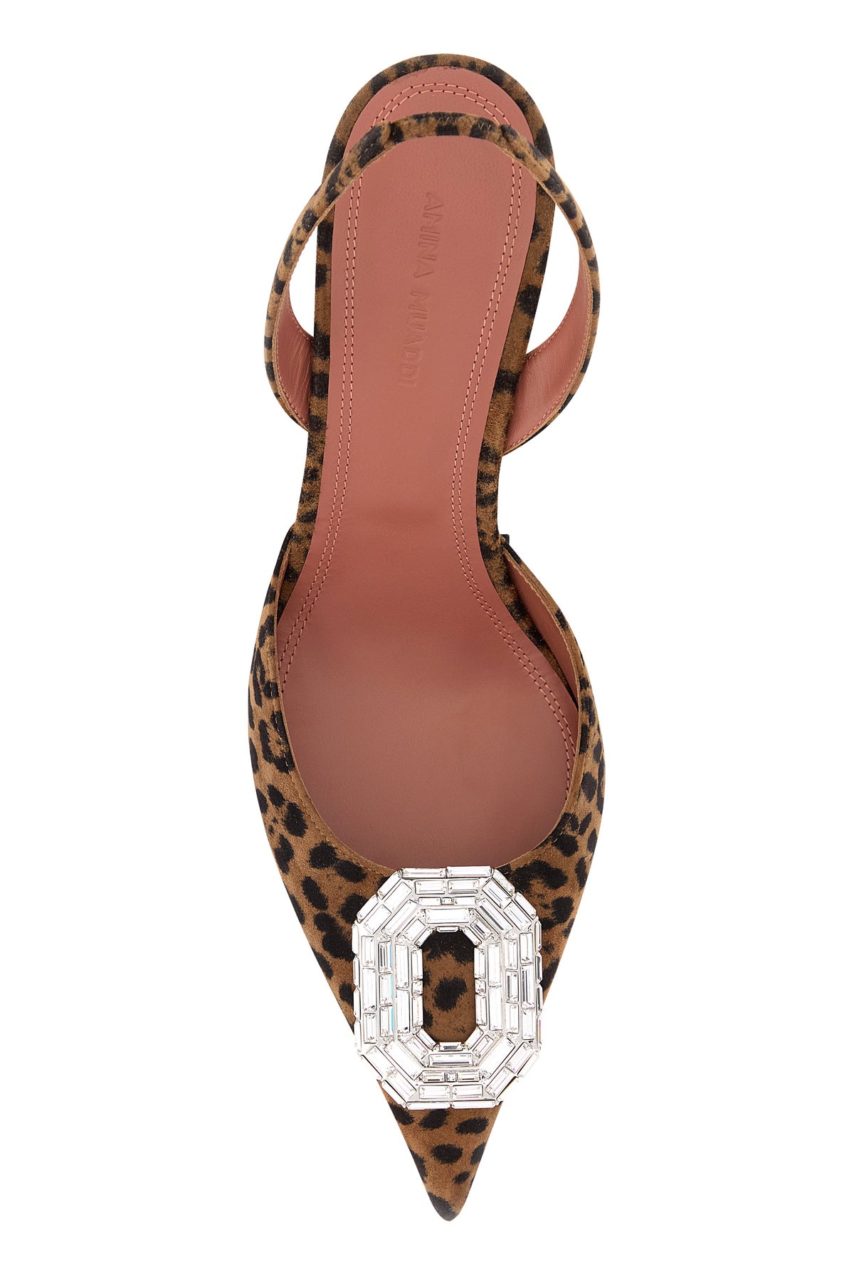 Slingback realized in suede characterized by animalier motif print on the entire surface enriched by jewel detail at the front.