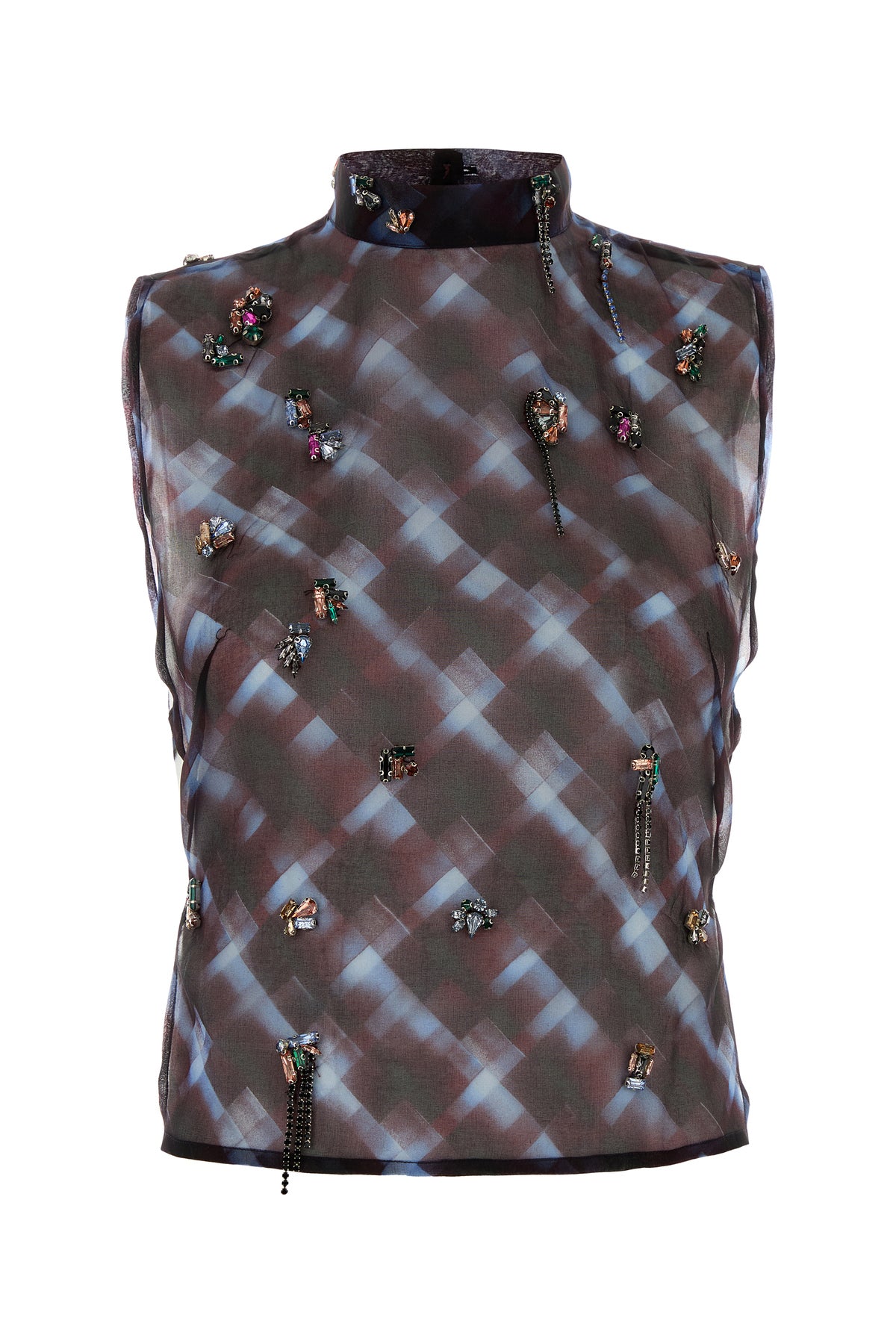 Top realized in pure silk characterized by peculiar print enriched by jewel embellishments on the entire surface.