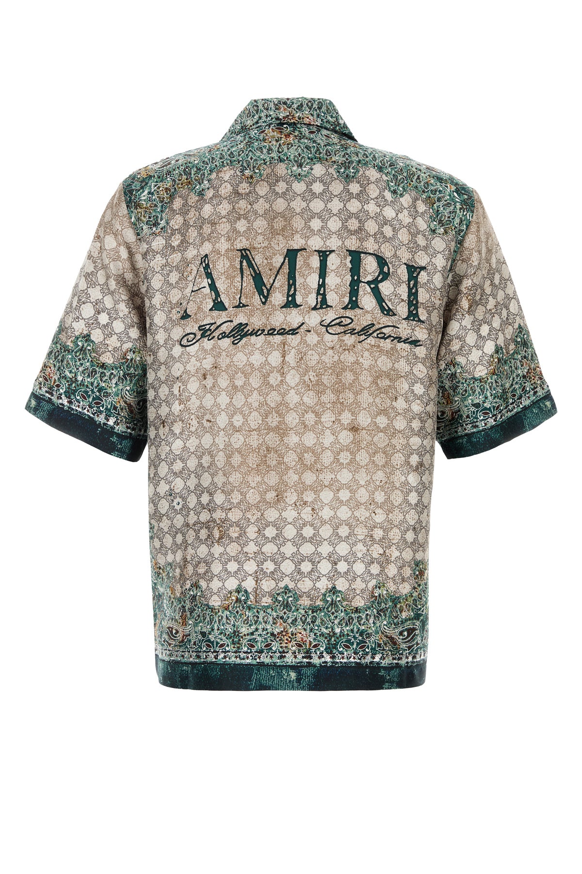 Short-sleeves shirt realized in pure silk satin characterized by peculiar print on the entire surface and printed logo on the chest and at the back.
