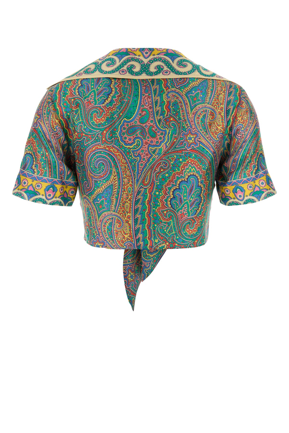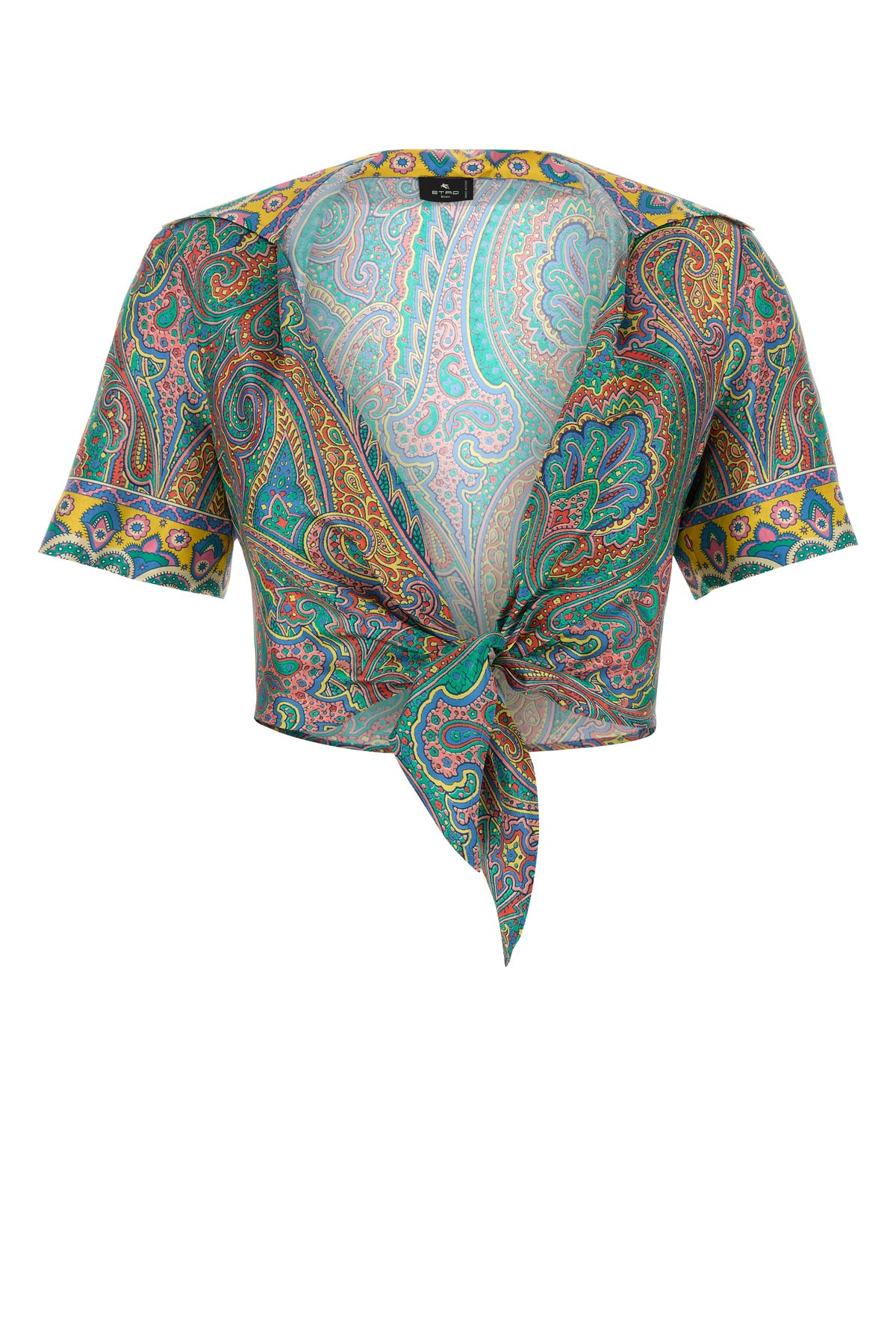 Cropped-cut shirt realized in pure silk characterized by Paisley print on the entire surface.