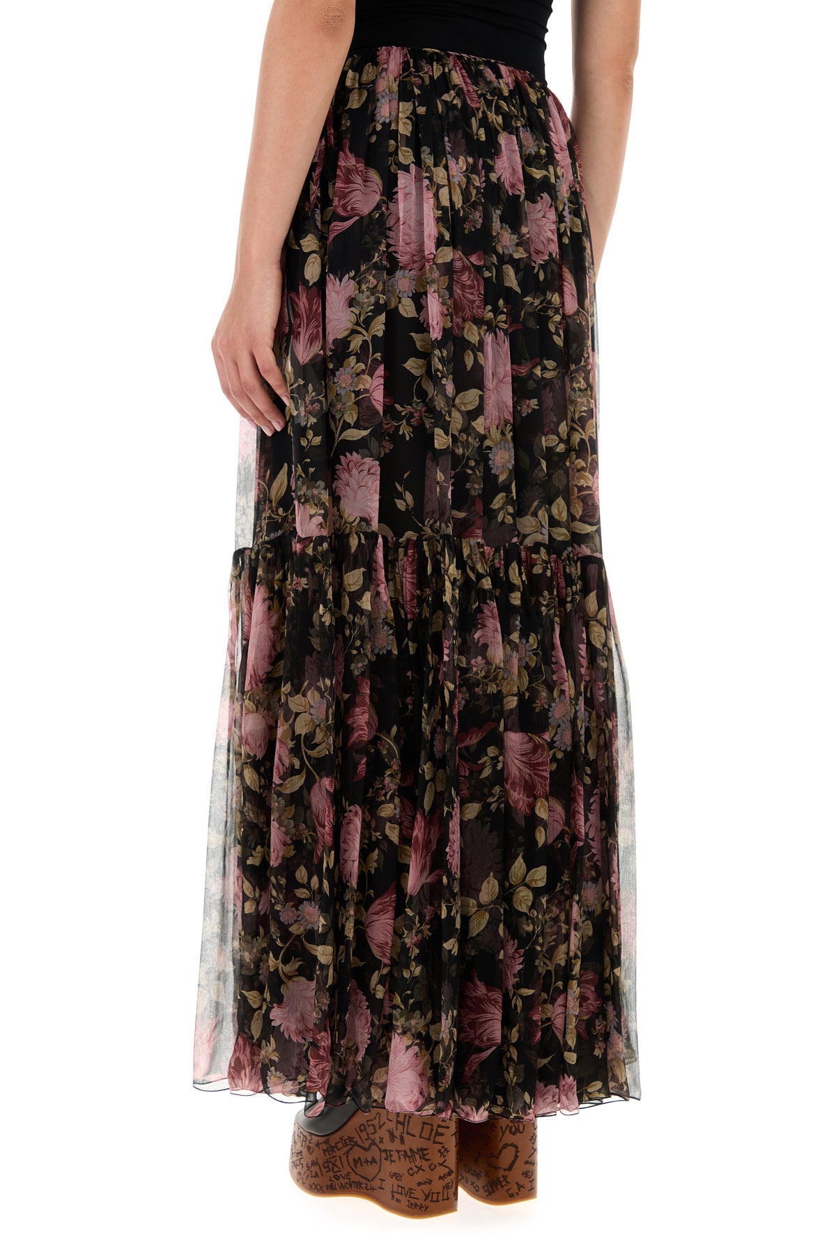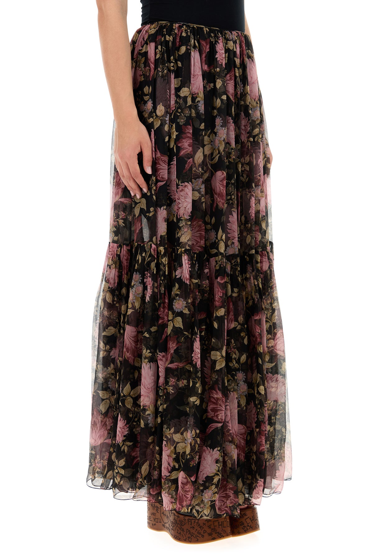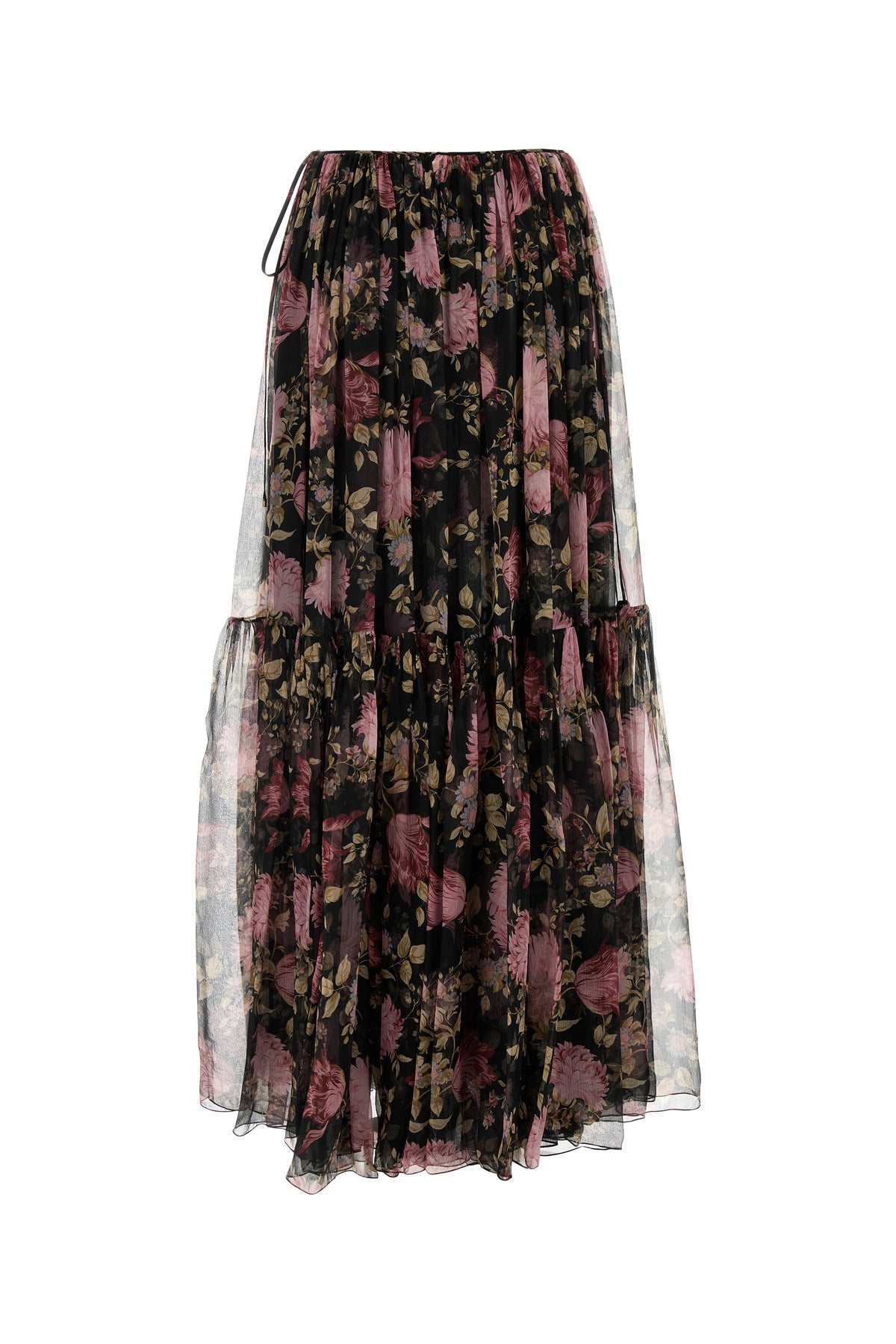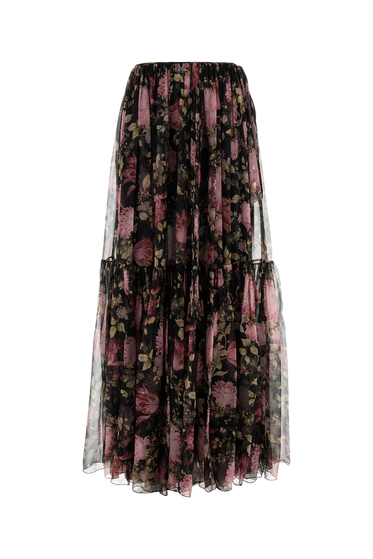 Flared skirt realized in pure silk characterized by floral print on the entire surface.