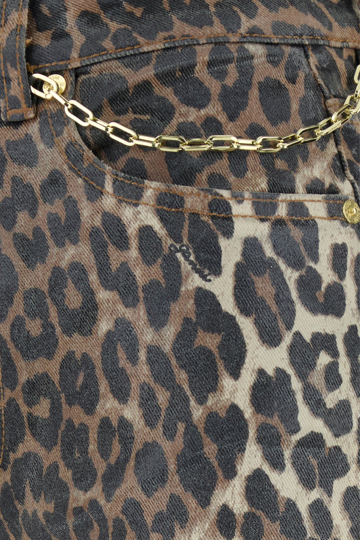 Pant realized in stretch cotton characterized by animal print on the entire surface.