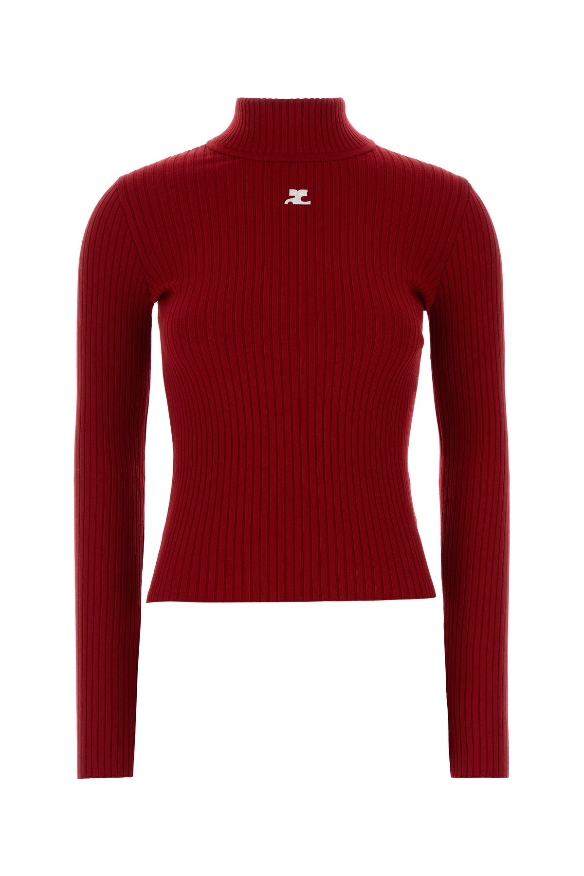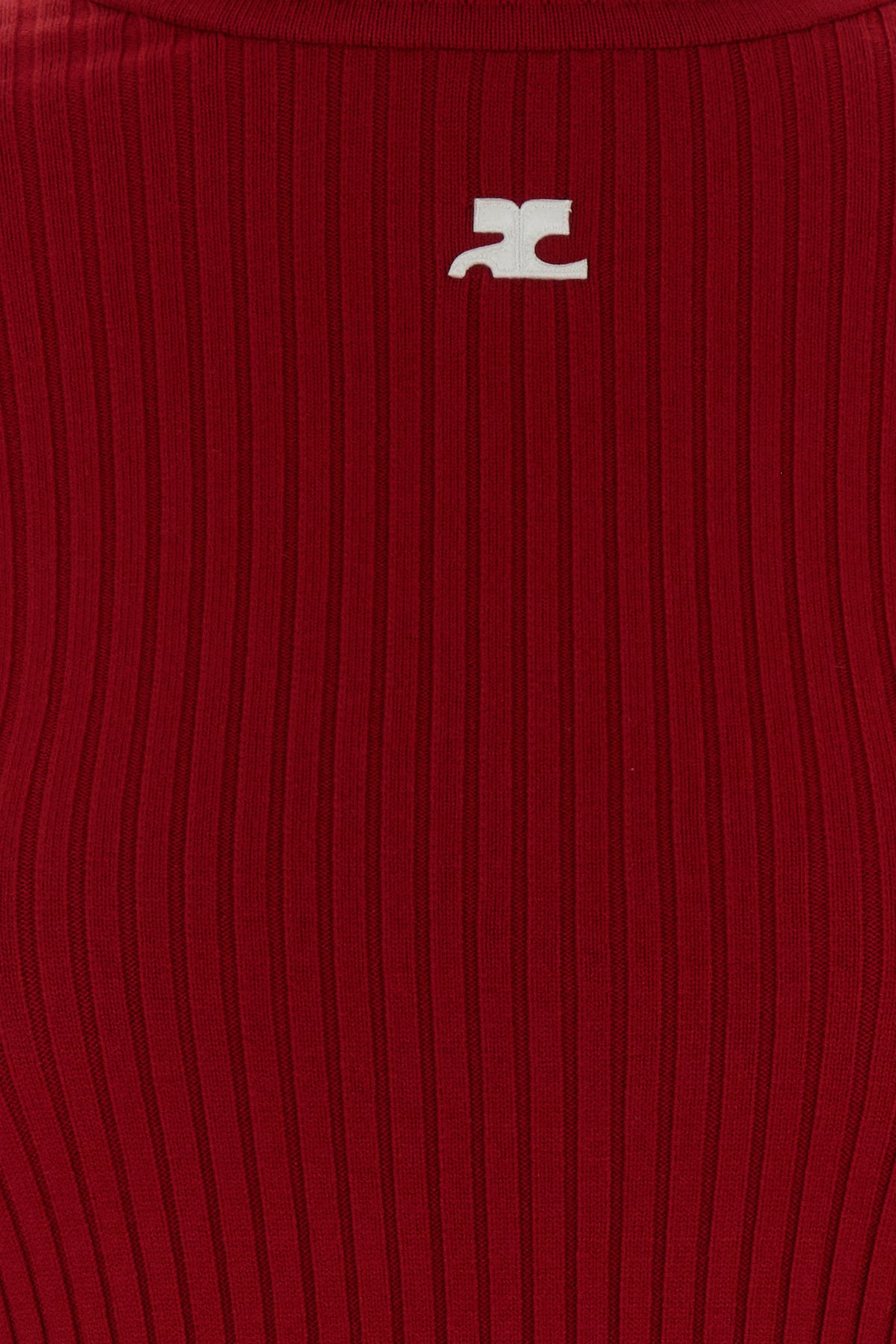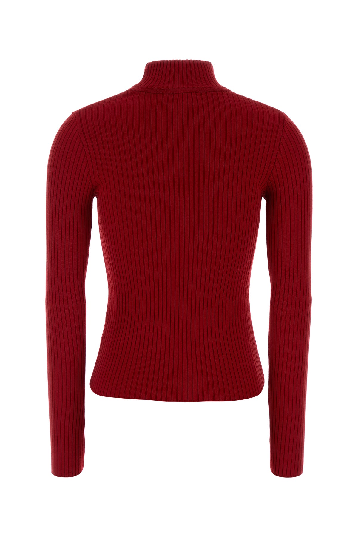 Sweater realized in ribbed viscose blend enriched by tonal logoed patch at the front.