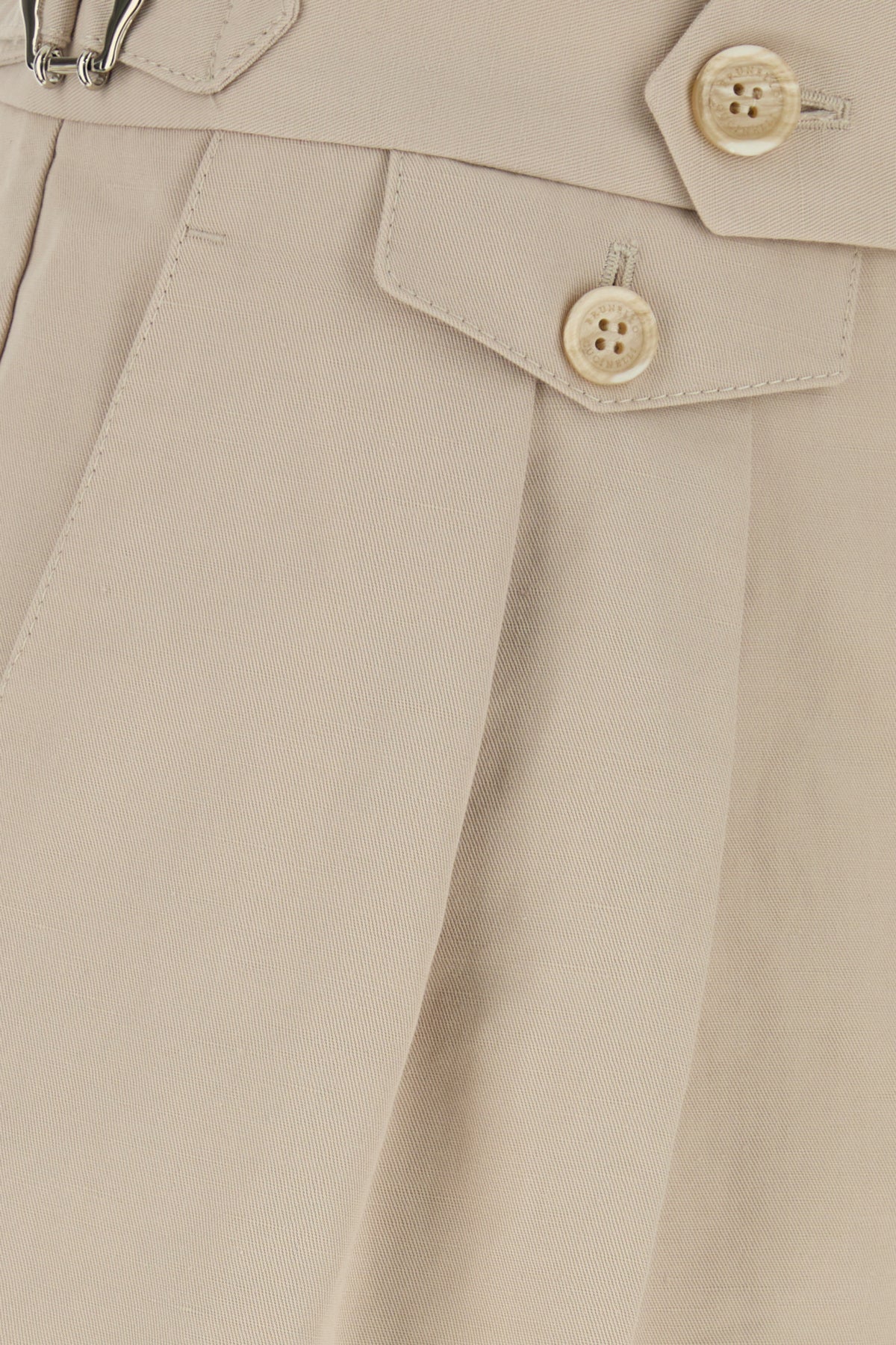 Bermuda shorts realized in cotton and linen characterized by inverted pleats.