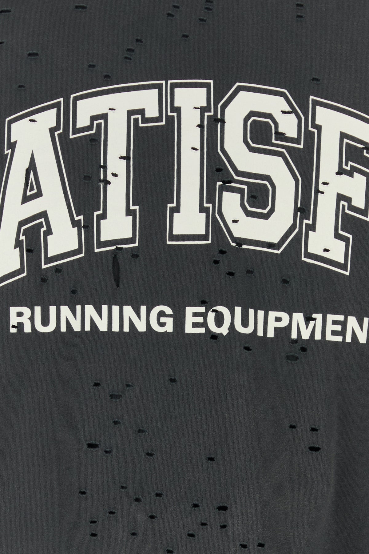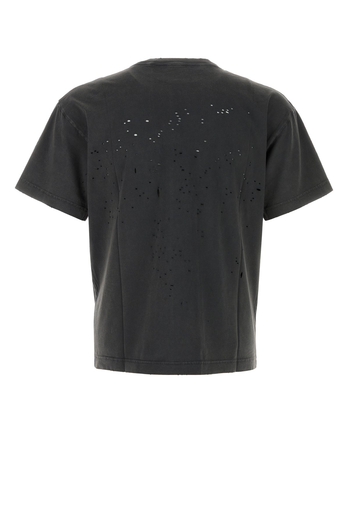 T-shirt realized in distressed pure organic cotton characterized by logoed print at the front enriched by logoed label on the hemline.