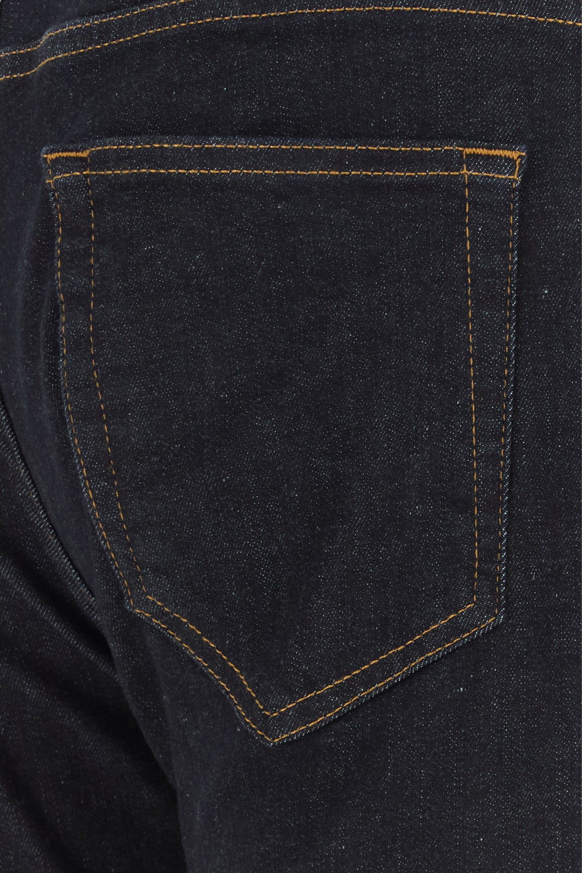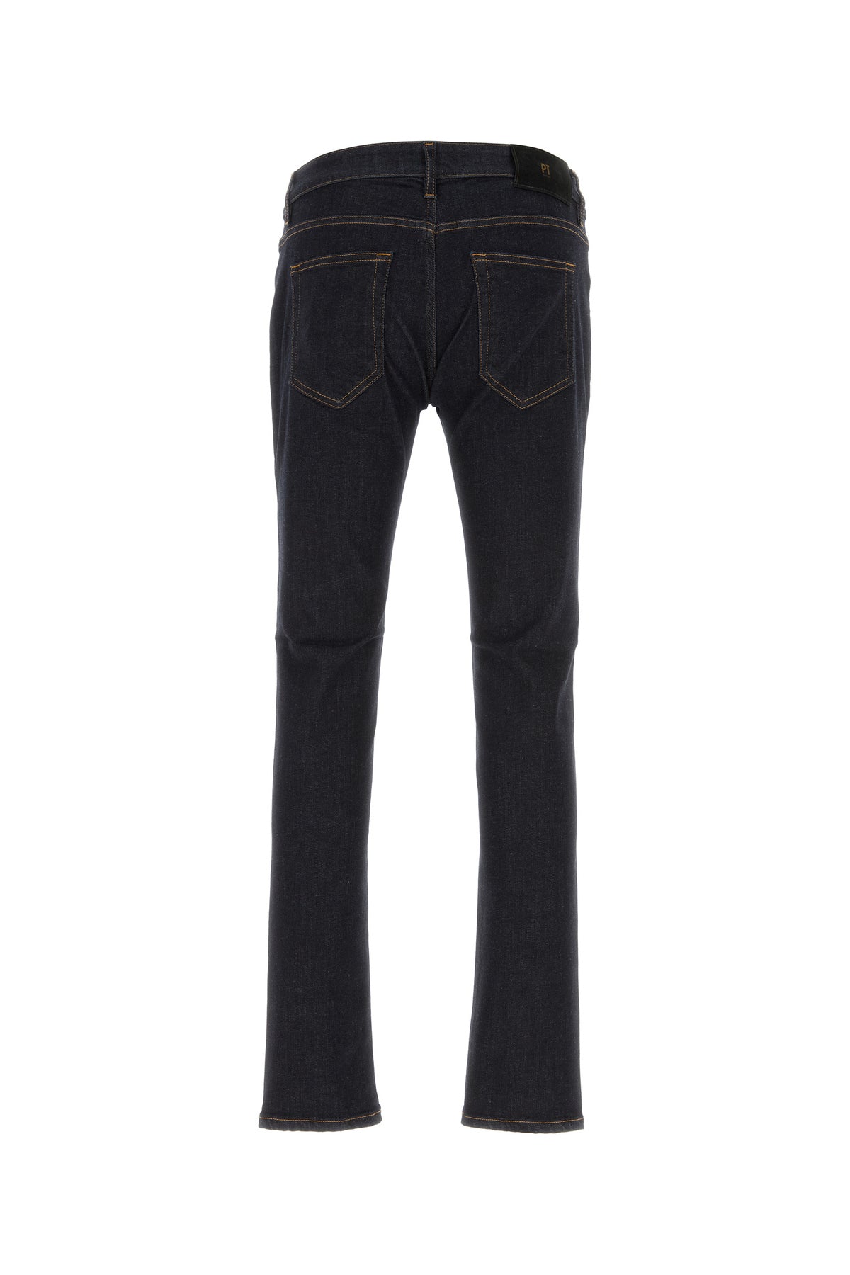 Jeans realized in stretch denim enriched by contrasting logoed label at the back.