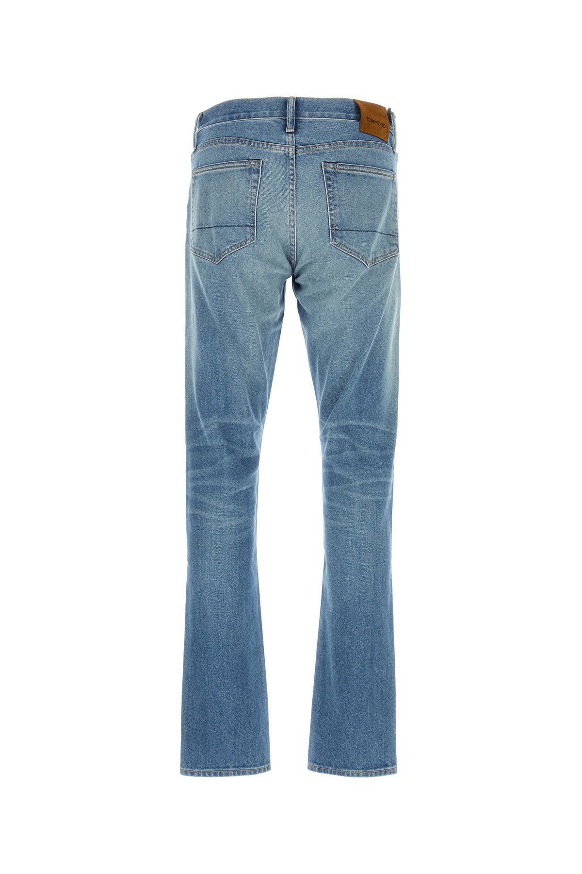 Jeans realized in stonewashed stretch cotton denim enriched by contrasting logoed label at the back.