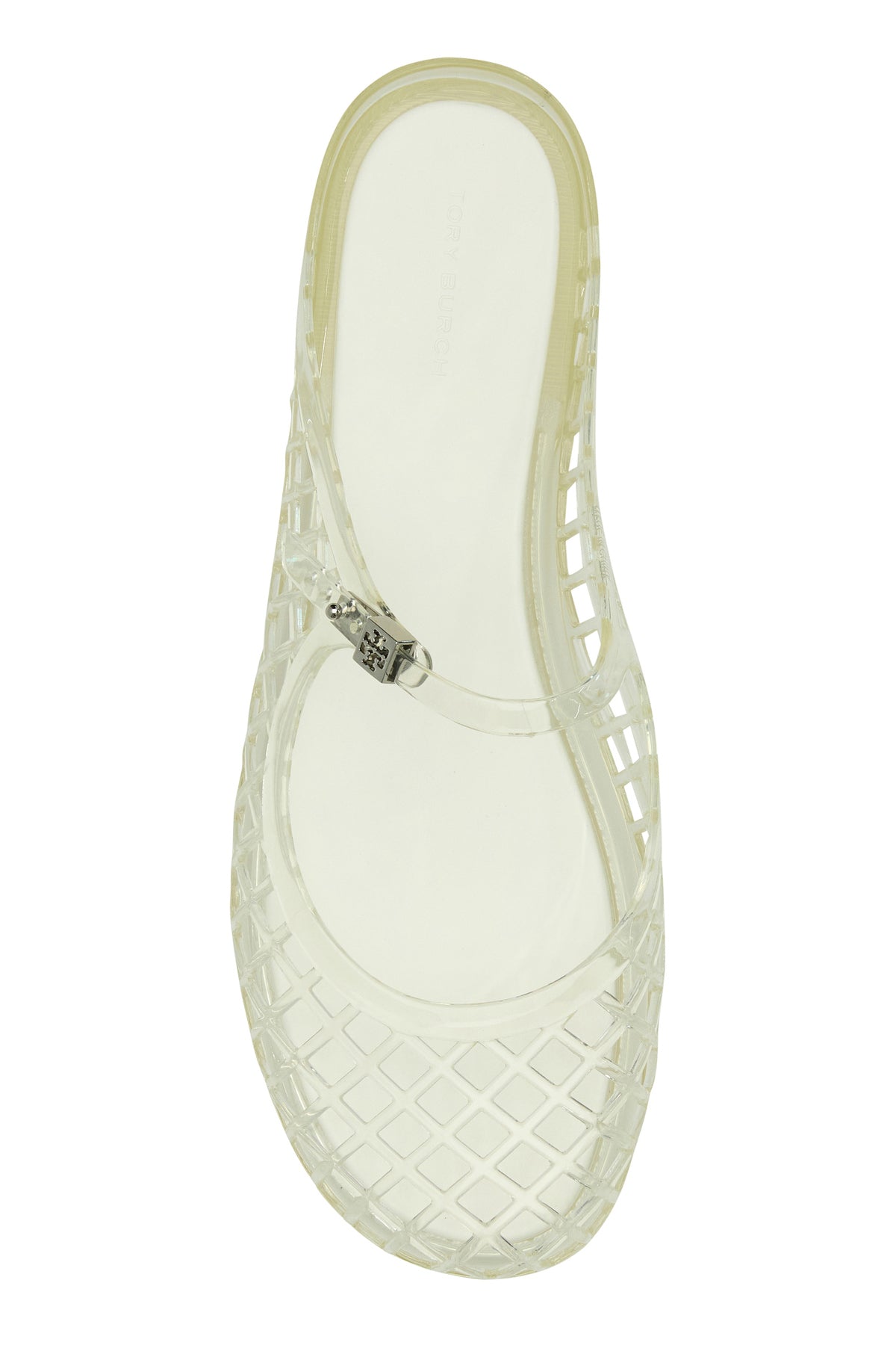 Slippers realized in rubber enriched by logoed metal detail on the strap on the instep.