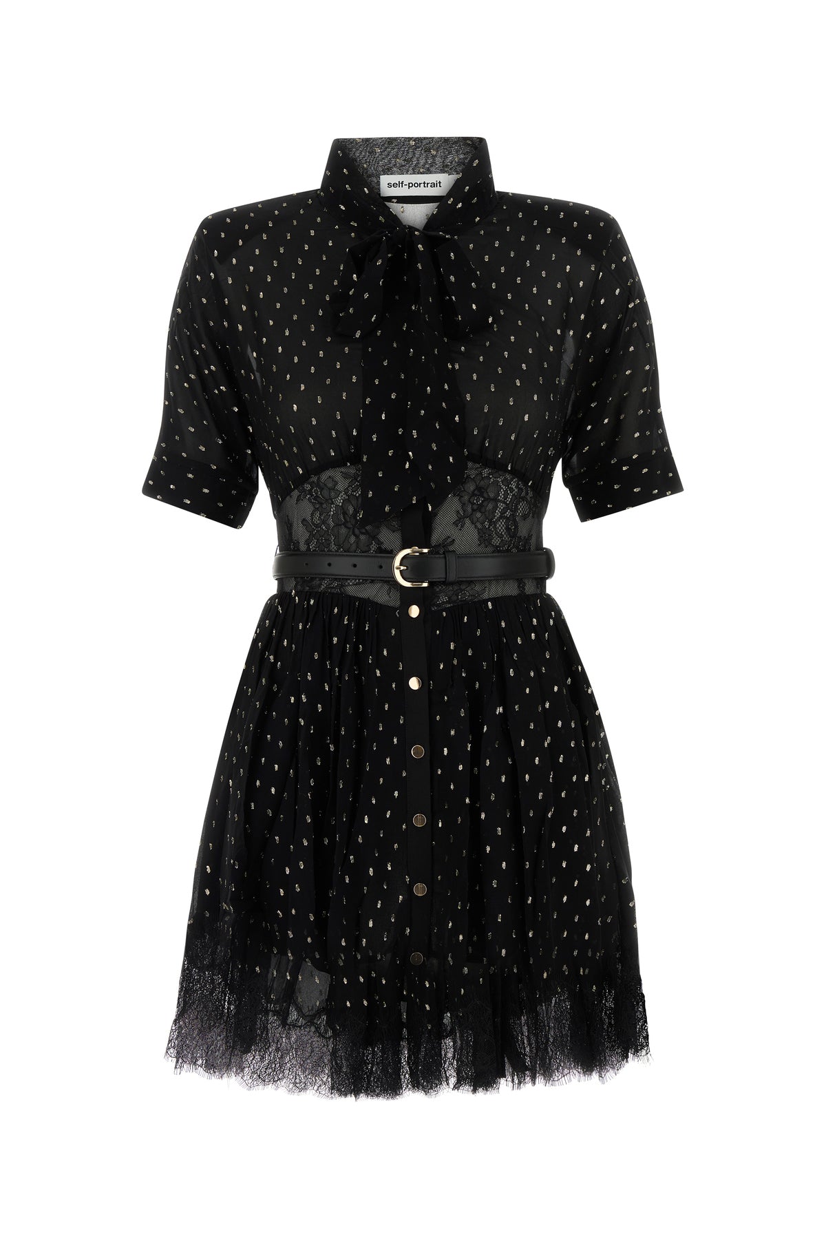 Mini dress realized in chiffon with lurex threads enriched by lace inserts and detachable belt at the waist.