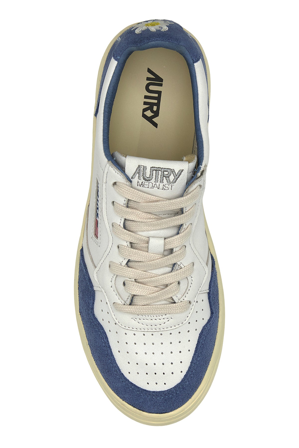Sneakers realized in smooth leather and suede characterized by floral embroidery on the heel enriched by logoed label on the side.