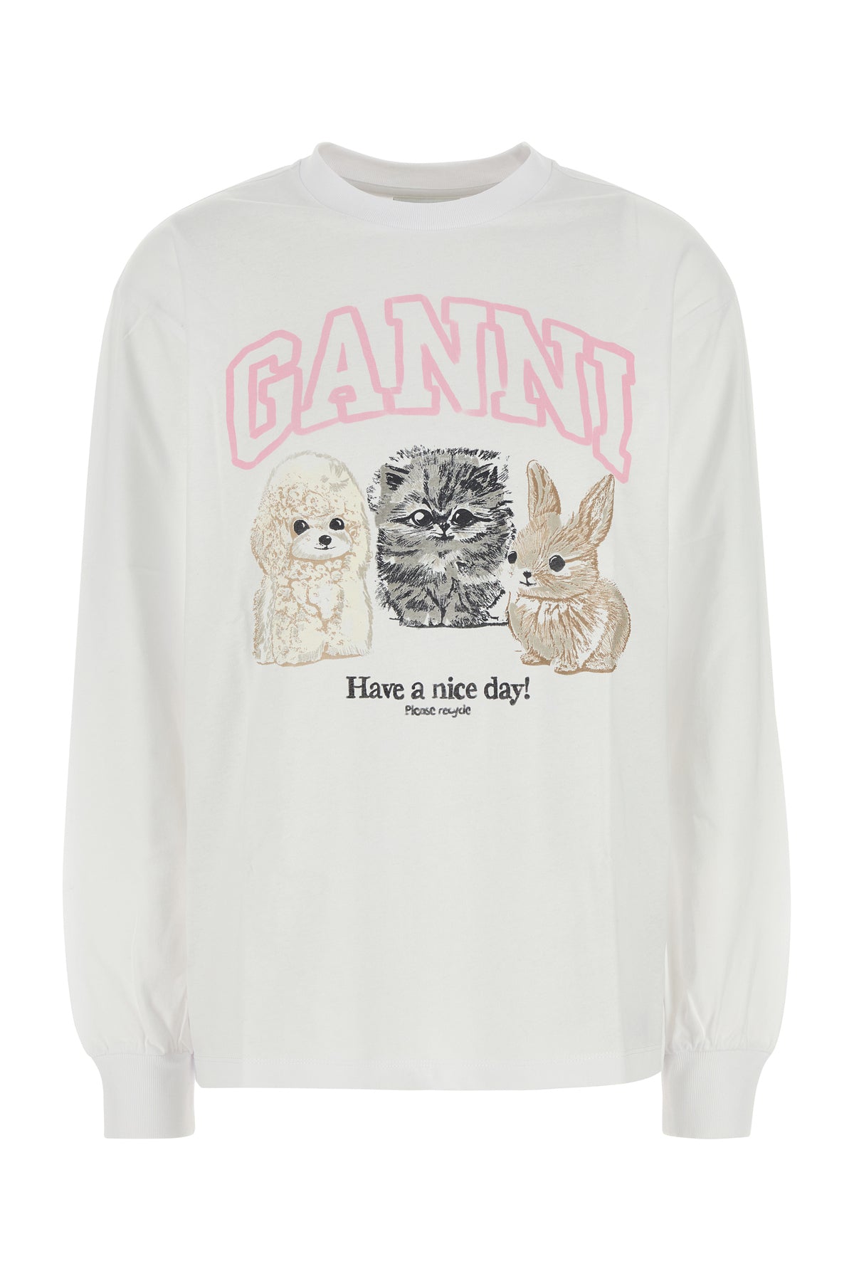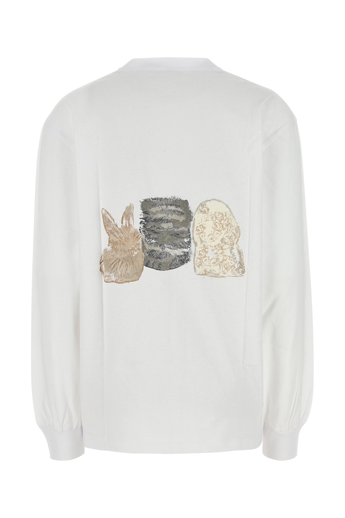 Oversize long-sleeves t-shirt realized in pure cotton characterized by contrasting logoed print at the front.