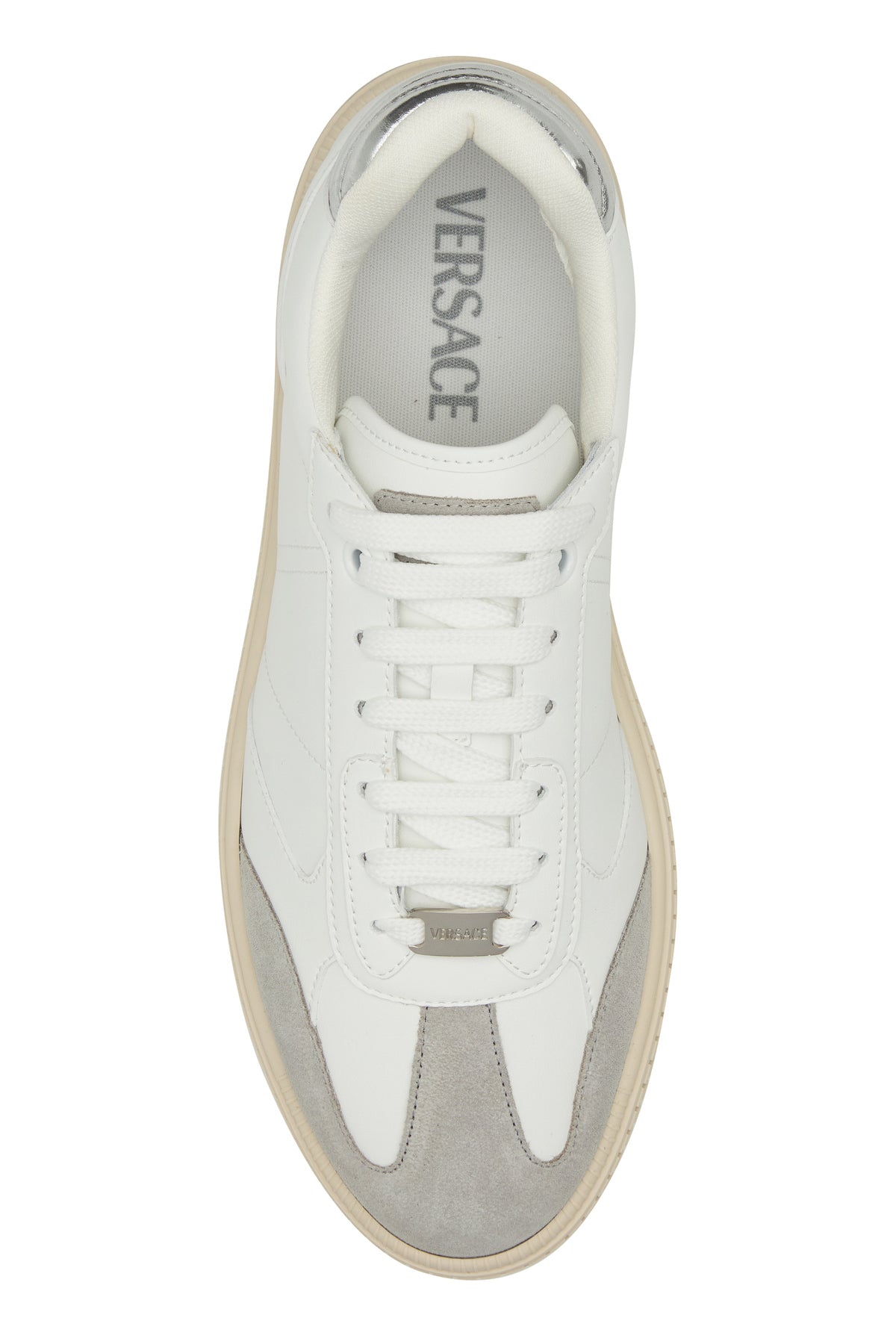 Sneakers realized in smooth leather with suede insert on the toe and laminated leather insert on the heel enriched by logoed metal plate on the instep.