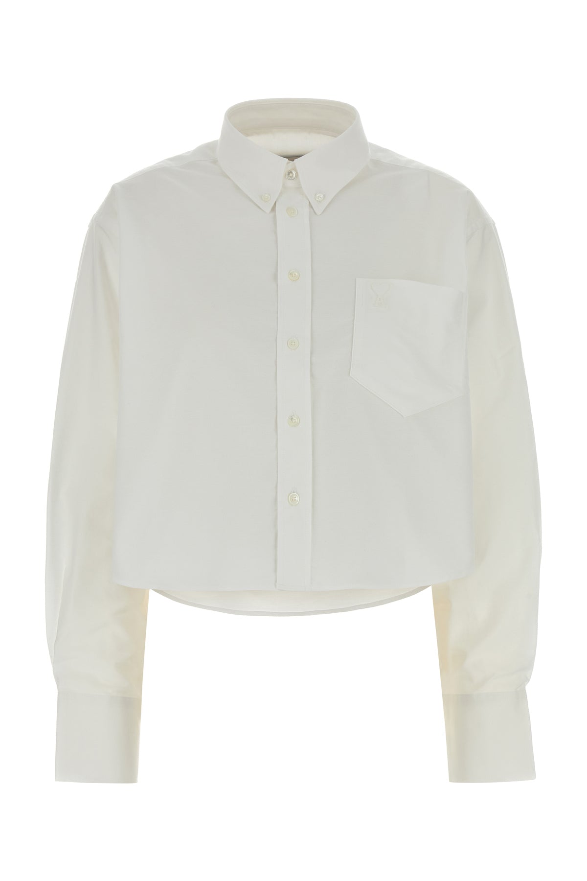 Cropped-cut oversize shirt realized in pure cotton oxford characterized by Ami De Coeur embroidery on the chest.