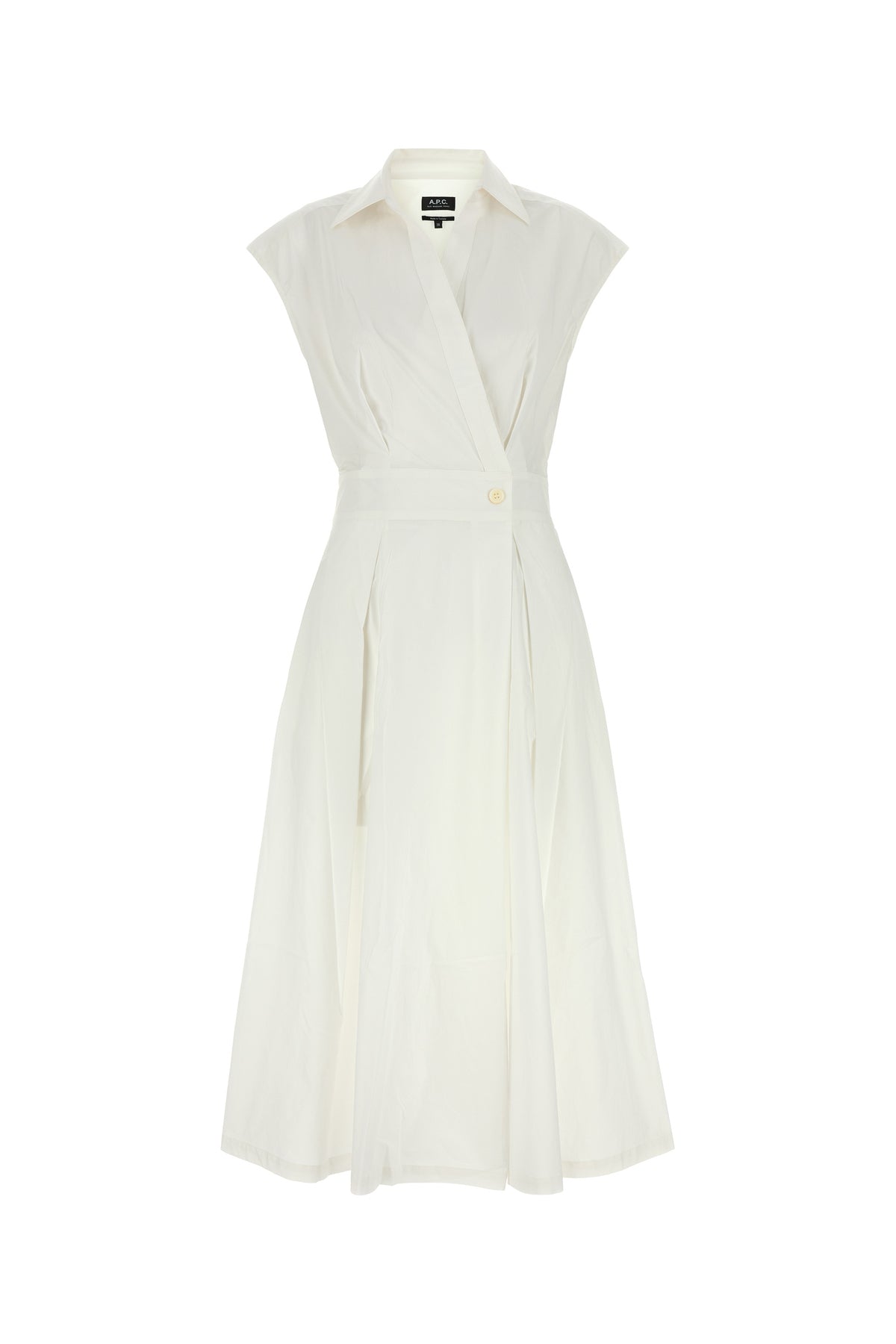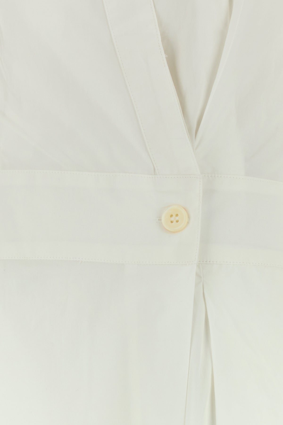Midi-length dress realized in pure cotton poplin characterized by V neckline.