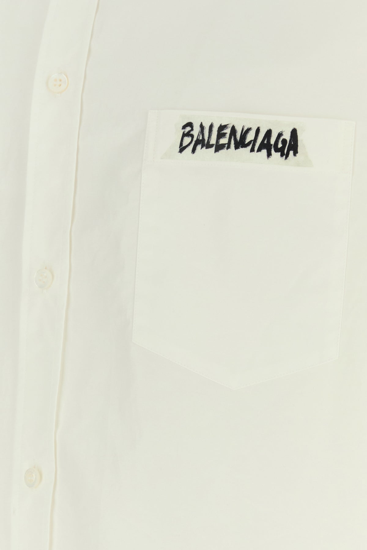 Short-sleeve oversize shirt realized in pure cotton poplin characterized by Masking Tape print on the chest and at the back.
