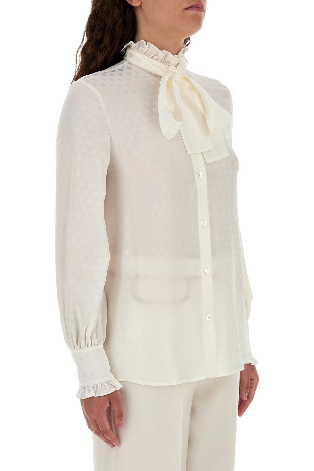 Shirt realized in pure silk characterized by heart-shaped embroidery on the entire surface.