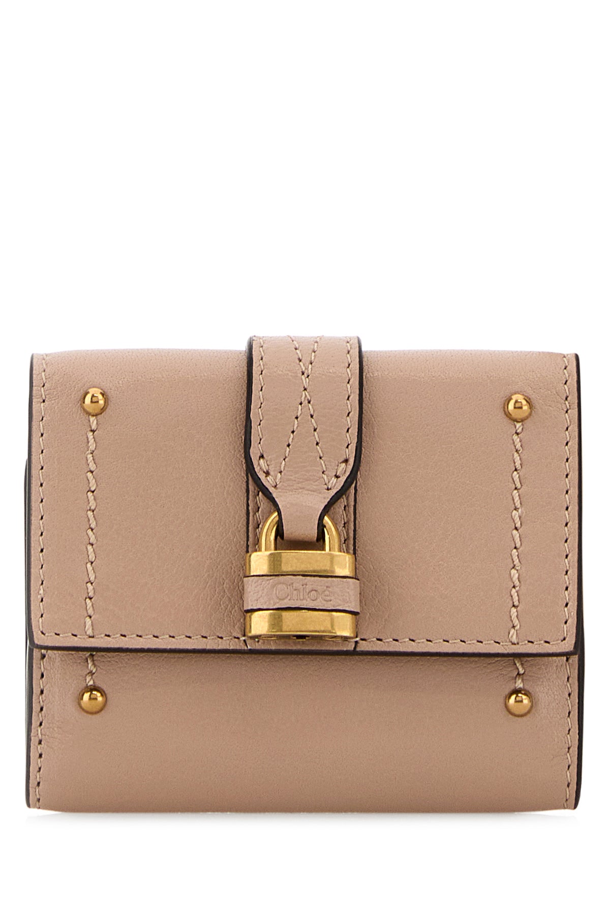 Wallet realized in slightly pebble leather enriched by Gold padlock and metal studs at the front.