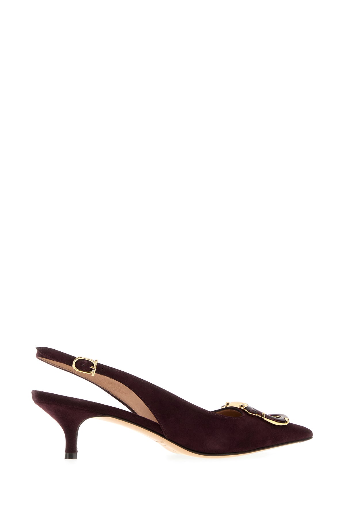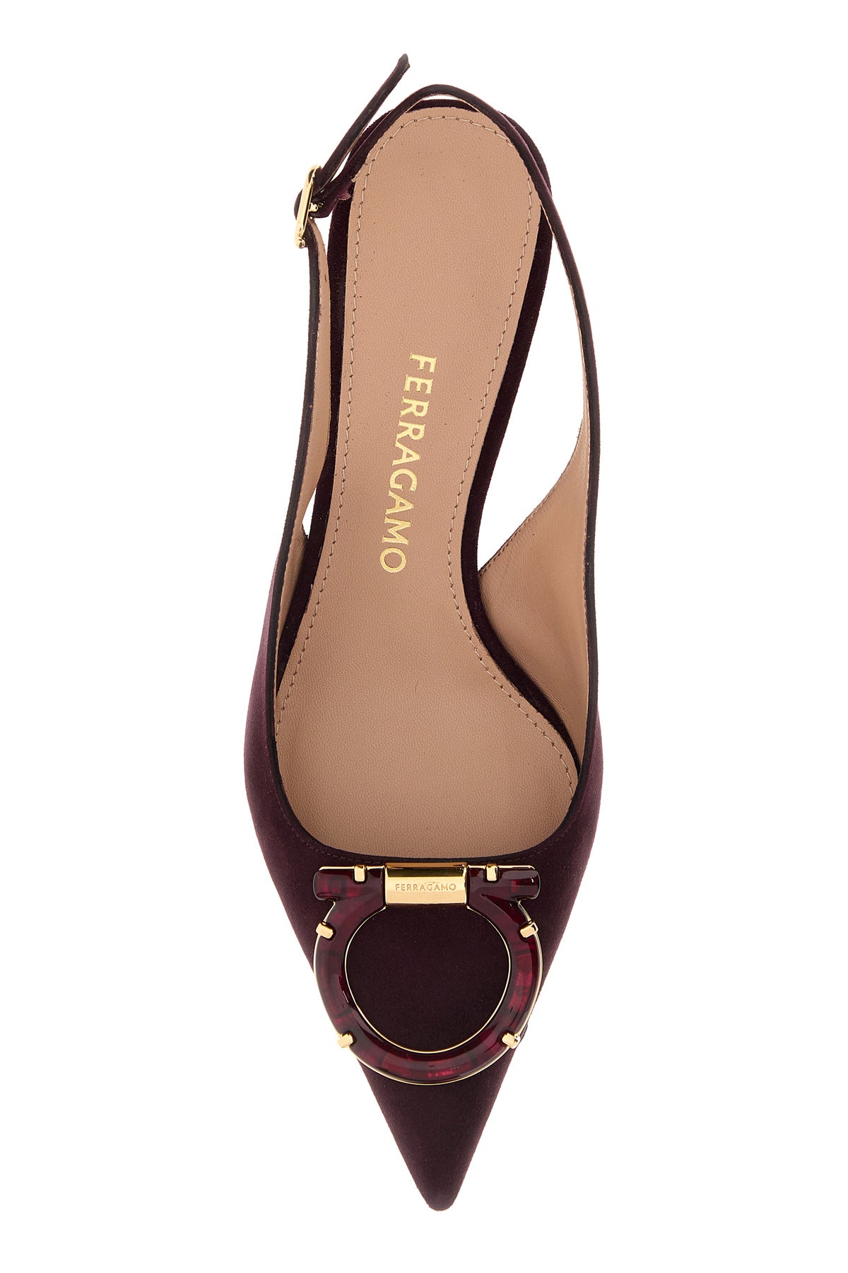 Slingback realized in suede enriched by Gancini metal detail on the instep.