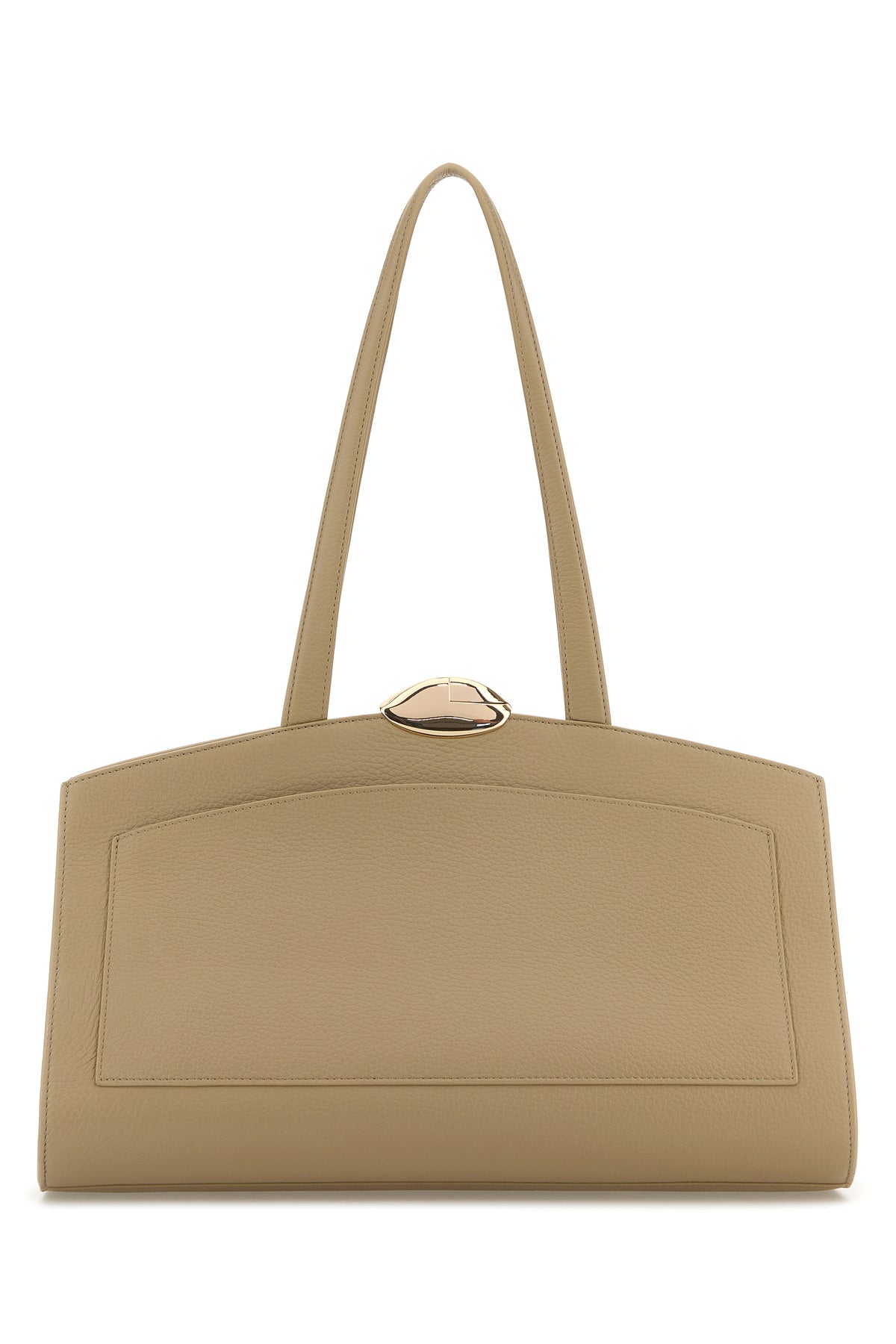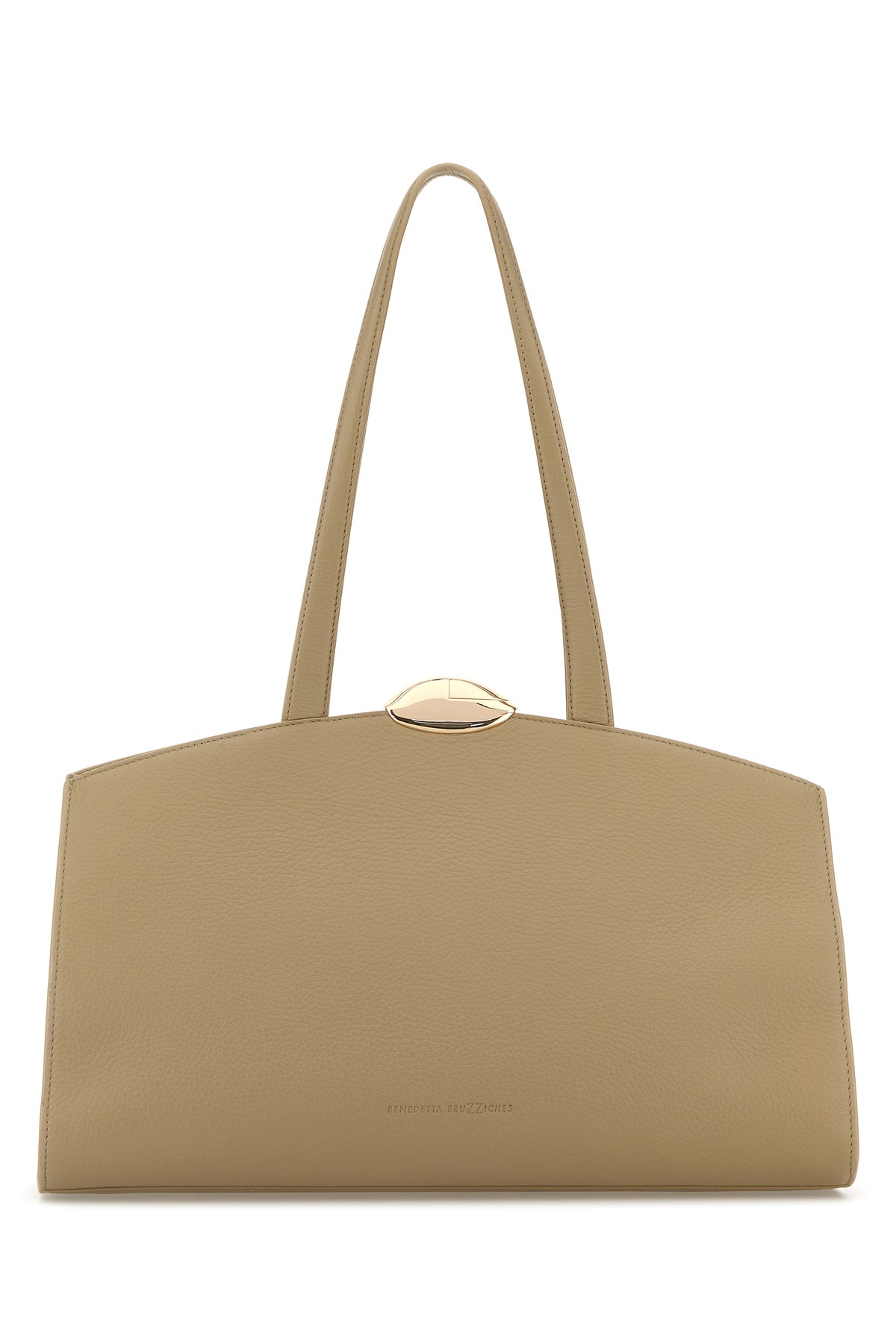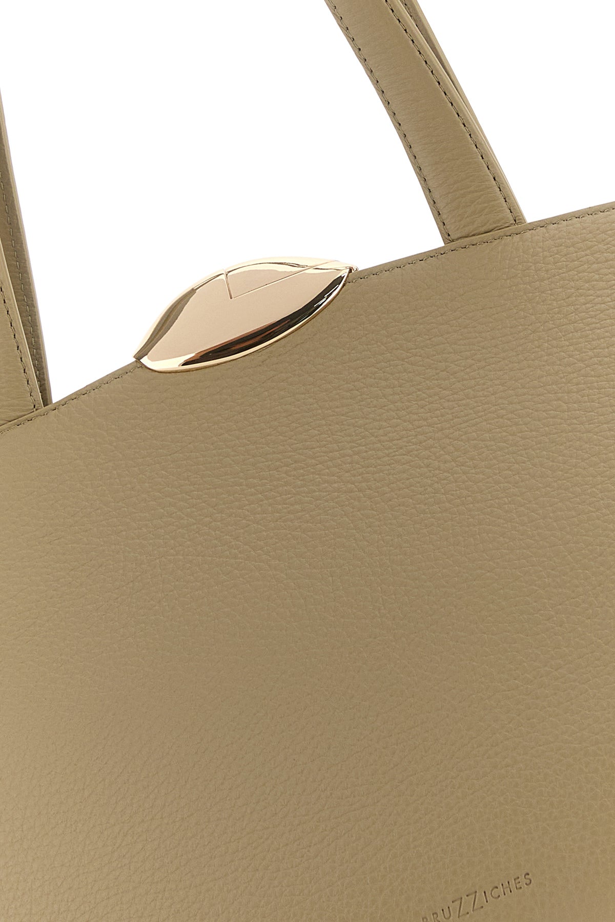Shopping bag realized in pebble deer leather characterized by embossed logo at the front.