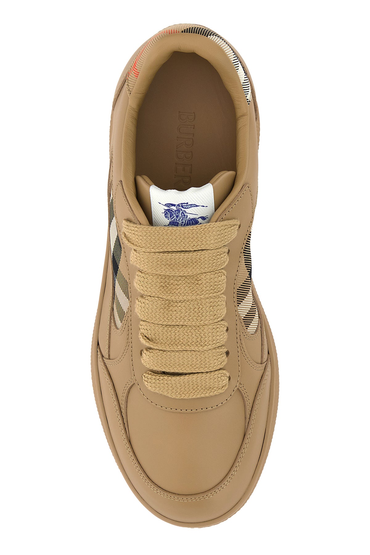 Sneakers realized in smooth leather characterized by Burberry Check insert on the sides and at the back.