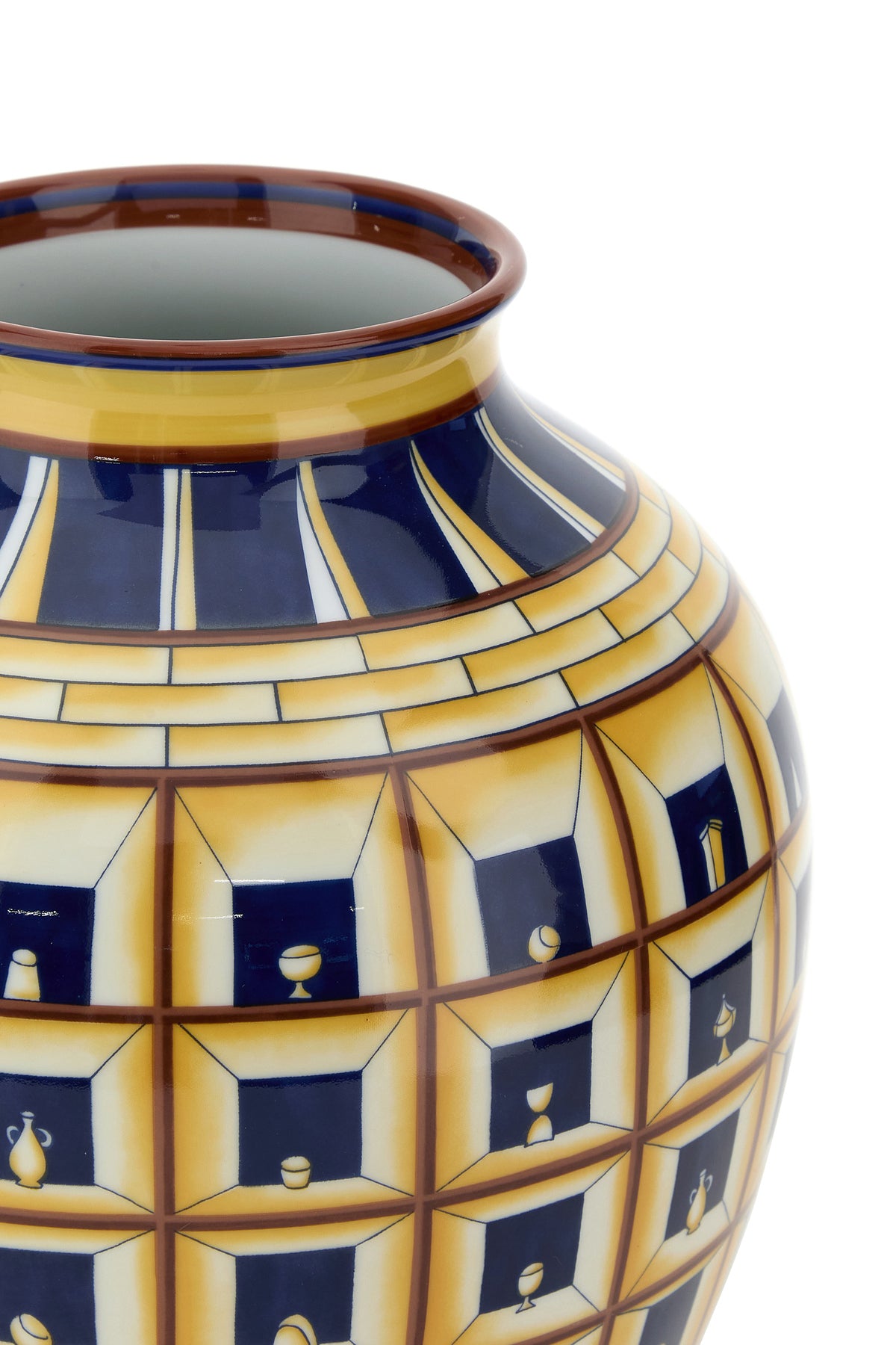 Vase from the Oriente Italiano collection realized in porcelain characterized by peculiar embellishment on the entire surface.