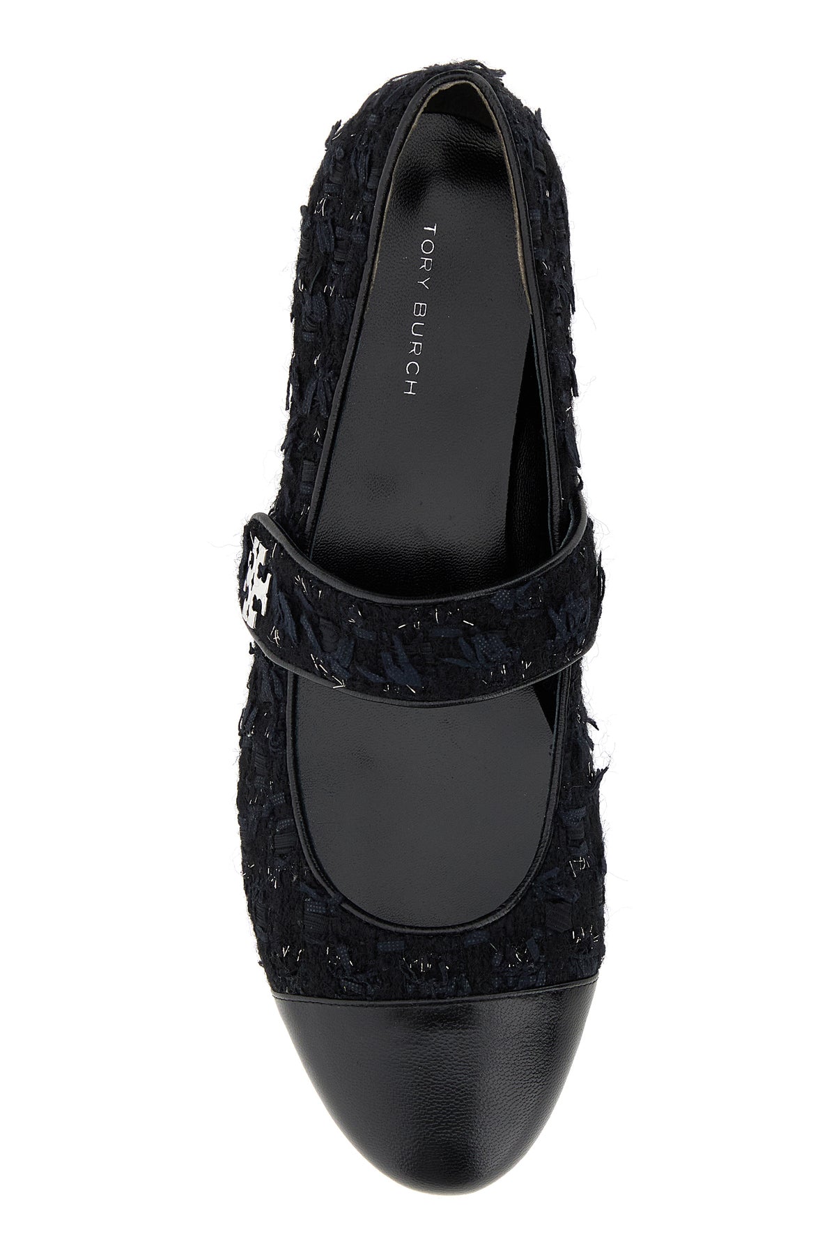 Ballerinas realized in boucle with lurex threads enriched by logoed metal detail on the side.